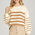 Cozy up in style with this long sleeve striped sweater top. Soft, classic, and endlessly versatile, it features a timeless stripe pattern and a flattering relaxed fit. Perfect for layering or wearing on its own, it effortlessly elevates your everyday look with comfort and charm.