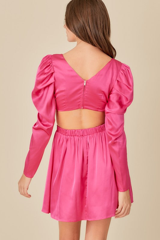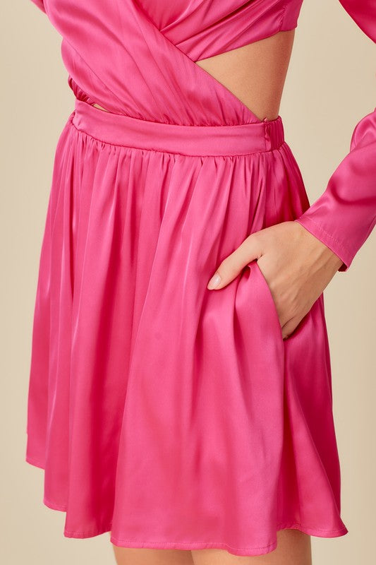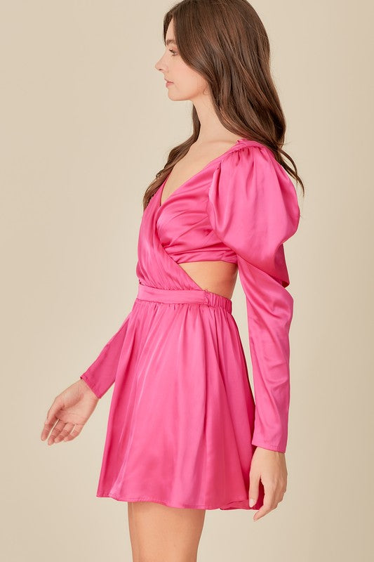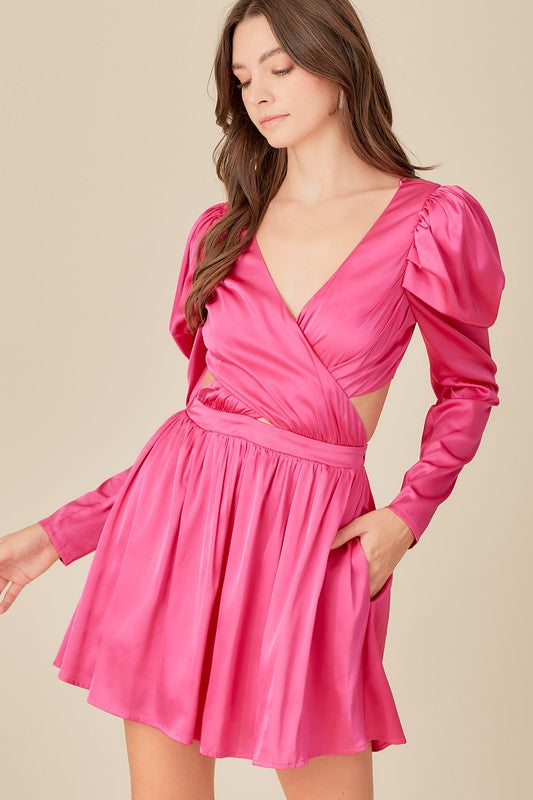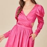 bright pink wrap stain dress