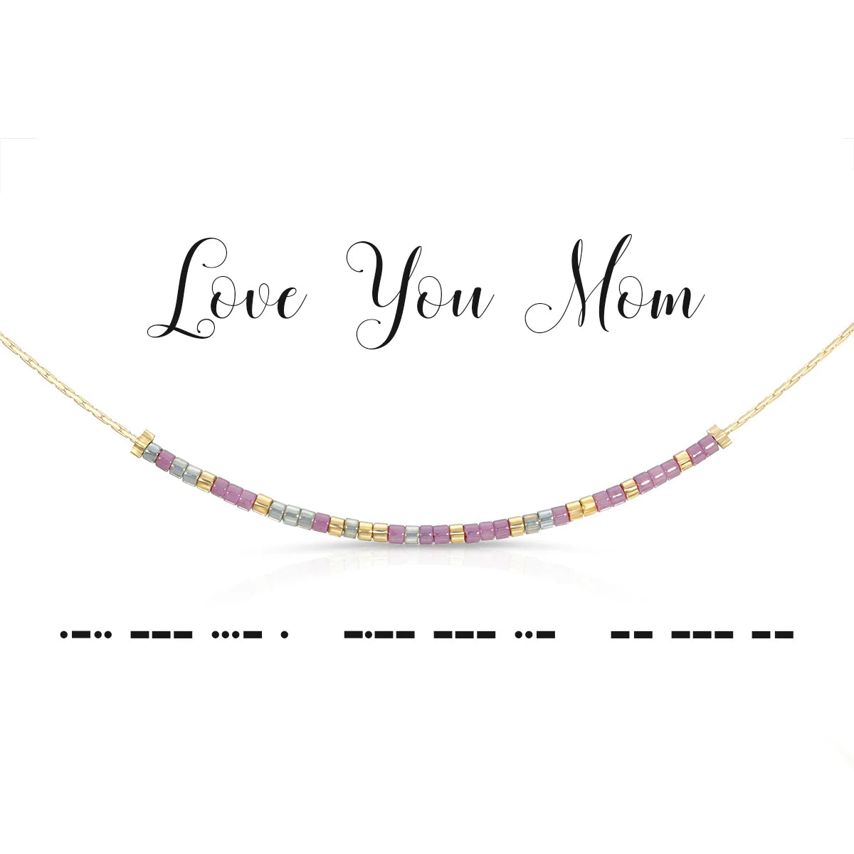 You'll put a smile on her face every time she puts on this Morse code necklace. What a great present for Mother's Day, Christmas, or her birthday! The message is encoded using shimmery gray and plum colored glass beads.