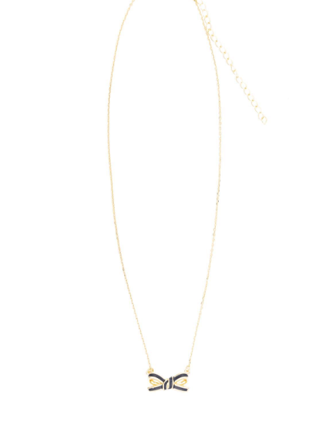 The Luxe Bow Necklace is a stunning statement piece that combines playful elegance with sophisticated charm. This necklace adds a touch of refined femininity to any ensemble. The bow is expertly designed to sit gracefully at the center, surrounded by subtle, sparkling accents or delicate chains that elevate its timeless appeal. Perfect for special occasions or adding a glamorous touch to everyday wear, the Luxe Bow Necklace exudes a sense of luxury and charm. Whether paired with a simple blouse or an evening gown, this necklace is sure to turn heads with its perfect balance of bold style and classic grace.
