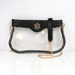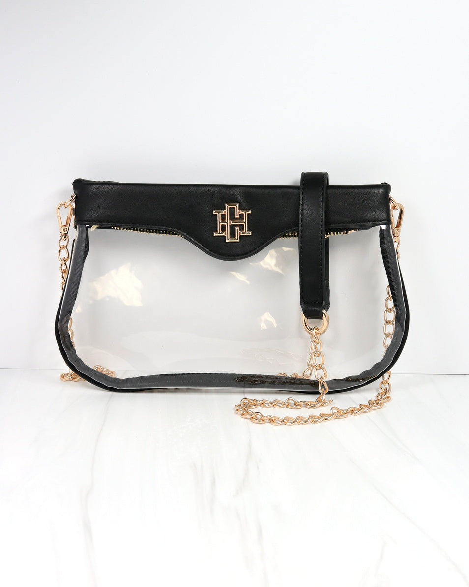 The Madi Clear Crossbody in Black is the perfect accessory for game day, combining style and practicality. It's transparent design meets stadium requirements, while the chic chain strap adds a fashionable touch.