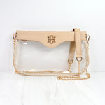 The Madi Clear Crossbody in Black is the perfect accessory for game day, combining style and practicality. It's transparent design meets stadium requirements, while the chic chain strap adds a fashionable touch.
