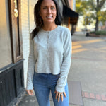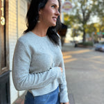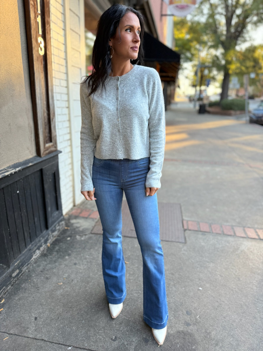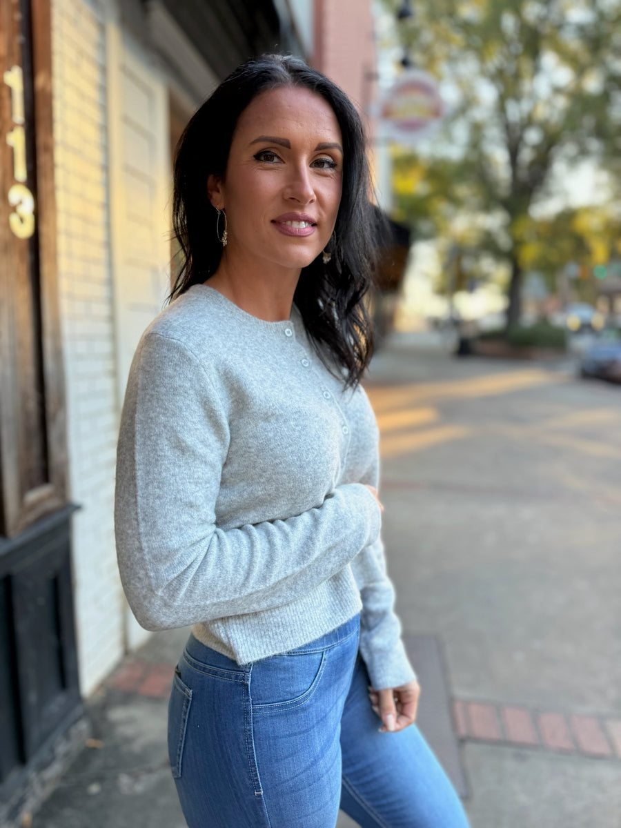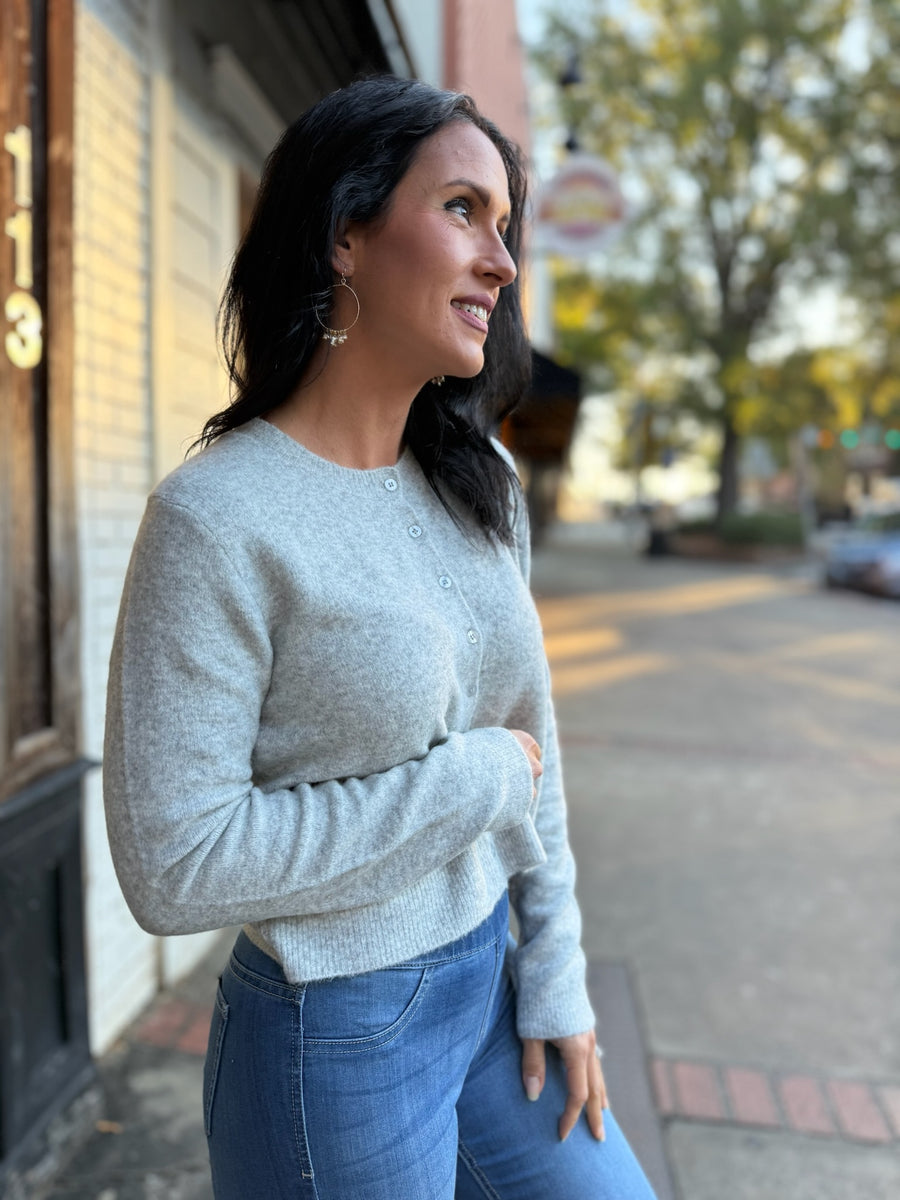 This relaxed crewneck cardigan is made from cozy sweater yarns with an easy button-up front that’s perfect for layering. Whether tossed over a tank or worn solo, it’s the ideal go-to for cozy, casual days.