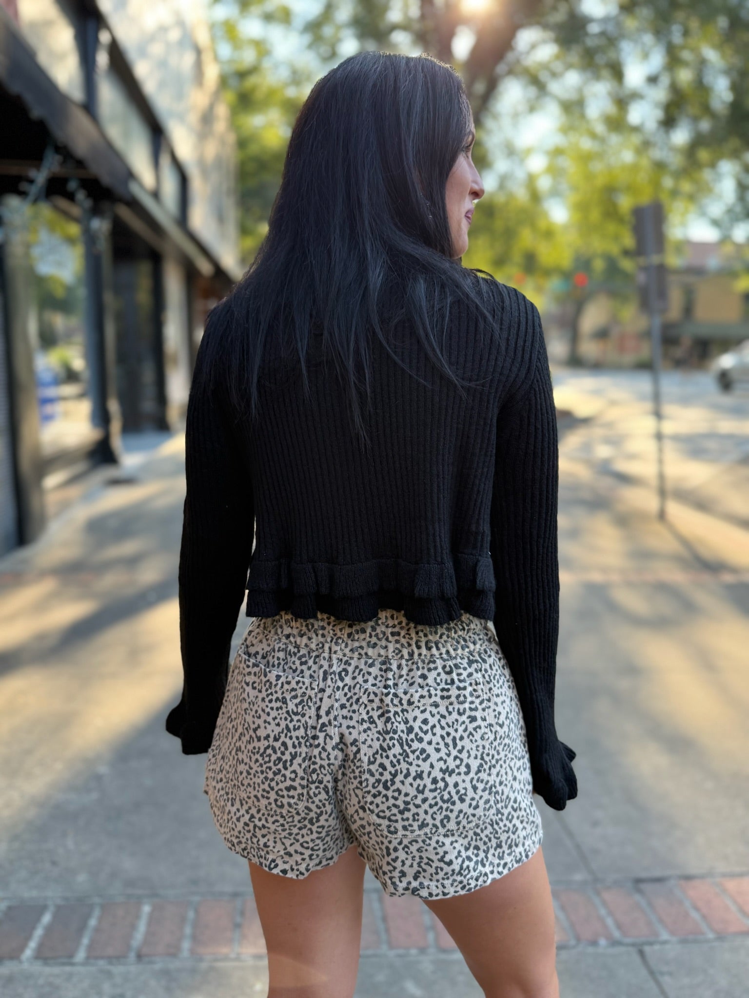 The Midnight Ruffle Knit Crop Top blends sweet details with a bold, modern edge. Crafted in a soft black knit, it features a fitted silhouette that flatters the figure, finished with playful ruffle accents for a touch of feminine charm. The cropped length pairs perfectly with high-waisted jeans, skirts, or trousers, making it a versatile piece for both casual days and nights out. Equal parts flirty and chic, this top is a must-have for statement-making style.