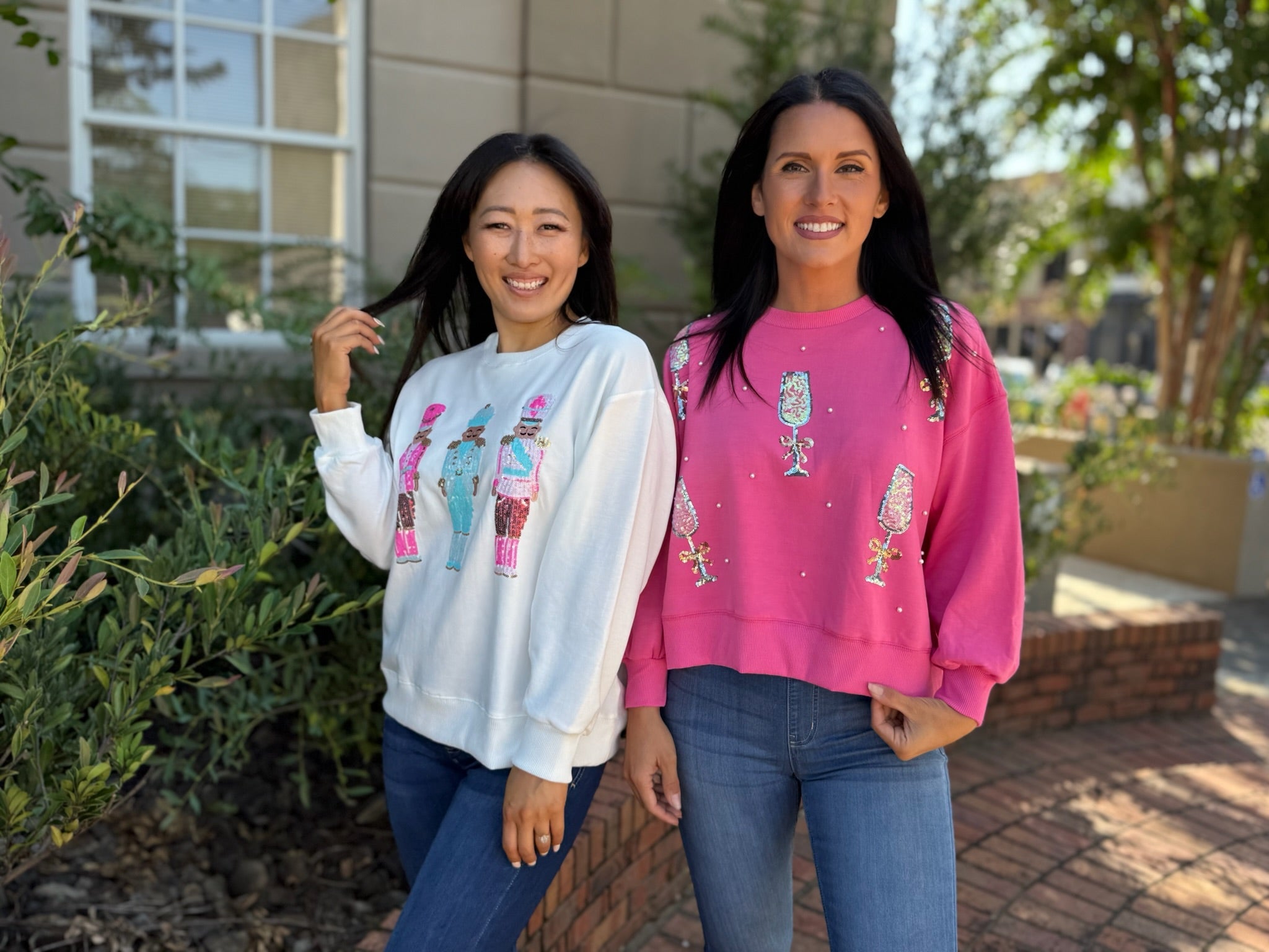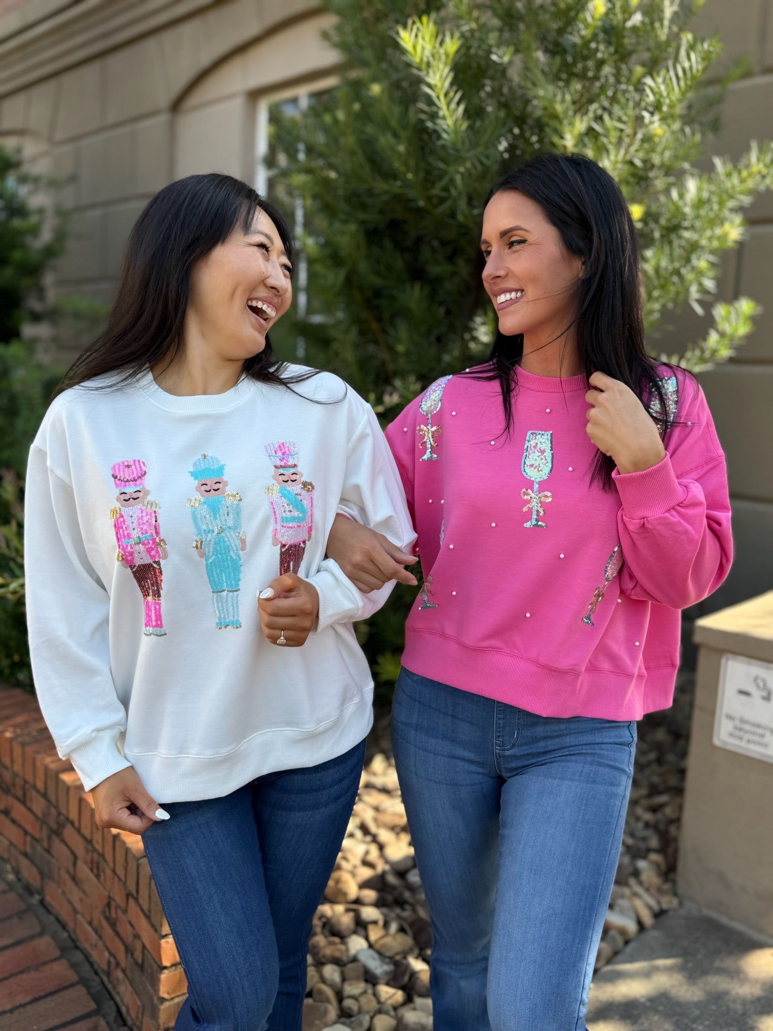 Cozy up, clink glasses, and spread the cheer—this sweatshirt brings the sparkle wherever you go!