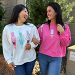 Say hello to instant party vibes with the Millie Cheers Sweatshirt—your new favorite way to sparkle and stay cozy. Featuring a bold graphic festive, glittering detail, this soft and stylish sweatshirt is made for holiday happy hours, girls’ nights in, and every moment worth toasting. With its relaxed fit and celebratory charm, it’s the perfect mix of comfort and glam.