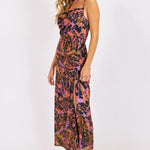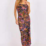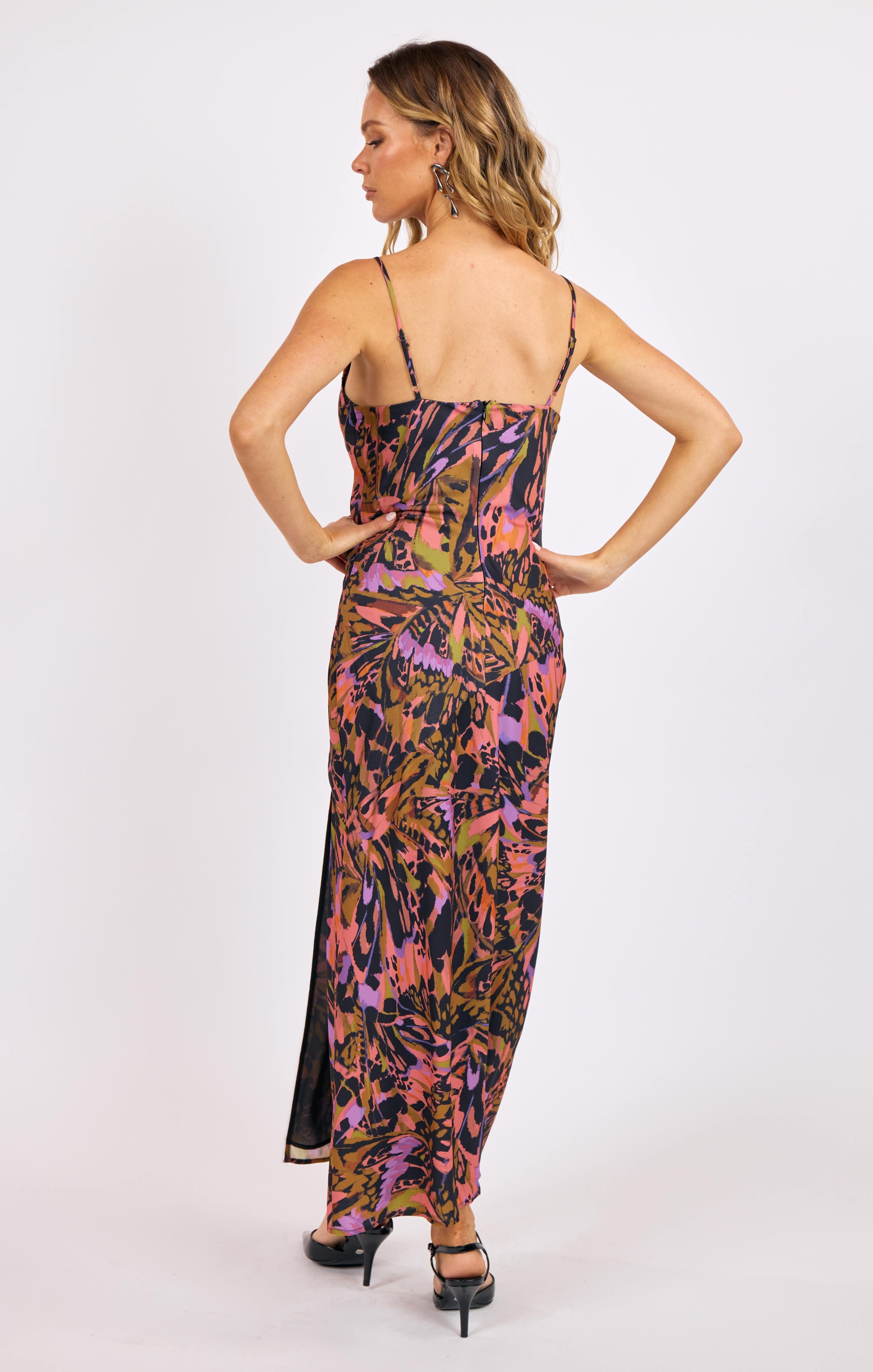 Multi Butterfly Kiss High Slit Bias Maxi Slip Dress
