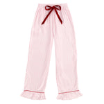 Luxuriously Soft Satin: Crafted from premium satin fabric, these pajamas offer a silky-smooth feel that glides over your skin for a comfortable, indulgent night's sleep. Elegant Velvet Waistband Ties: Featuring velvet ties on the waistband, these pajamas add a touch of sophistication.