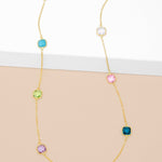 Embrace vibrant elegance with the Prism Cascade Necklace—a stunning piece that effortlessly combines modern charm with timeless appeal. Featuring an array of dazzling multicolor crystals, this long necklace adds a pop of personality to any outfit.