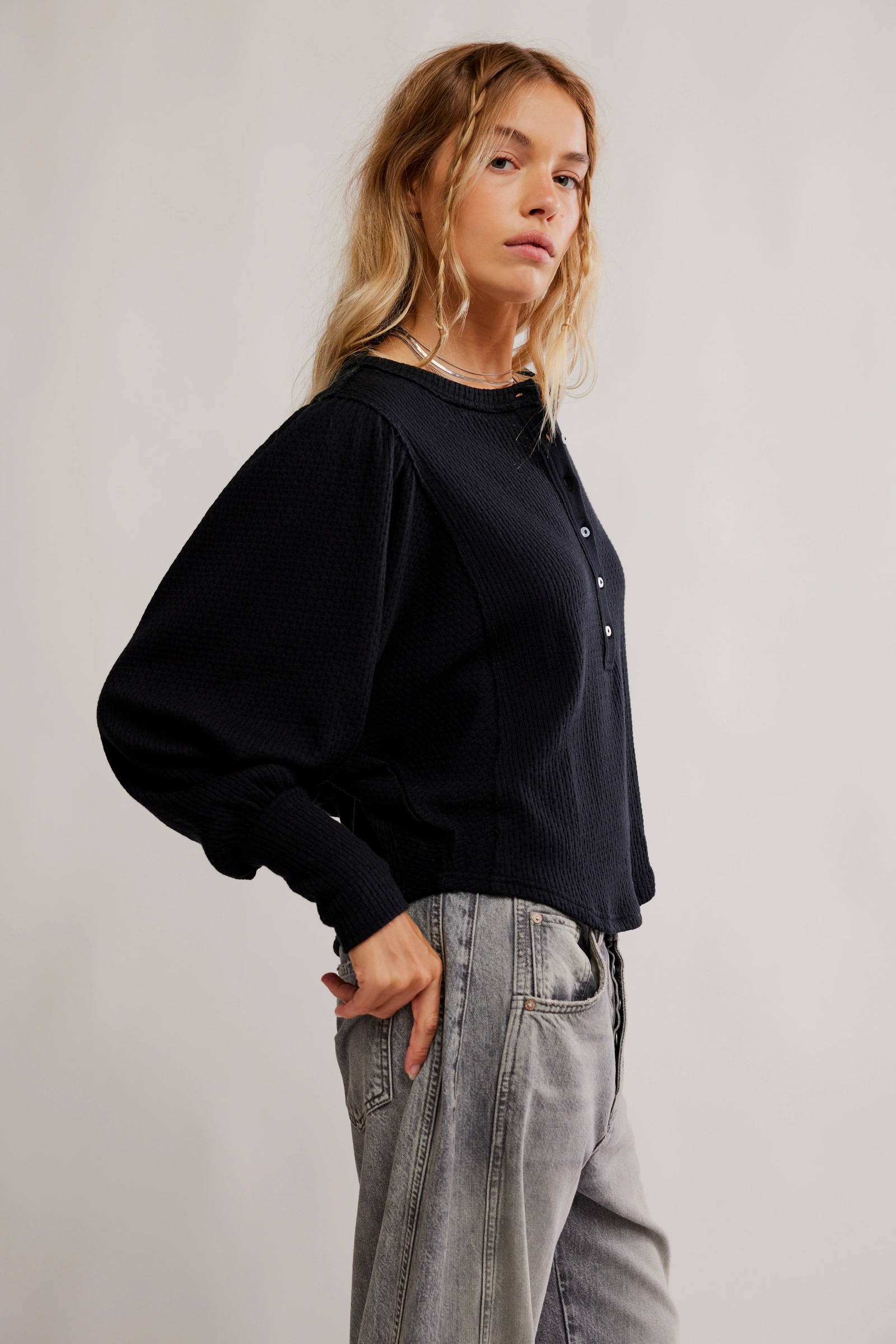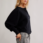 Meet your new everyday obsession: the Quinn Knit Top in Black – cozy, cool, and effortlessly elevated. With its soft waffle texture and laid-back henley buttons, it’s got just the right amount of edge for those “I woke up like this” vibes. Pair it with denim, joggers, or literally anything – it’s that kind of versatile. Basically, your closet just found its new MVP.