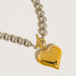 Fall in love with the Raissa 18K Gold Non-Tarnish Two Tone Heart Necklace—a delicate balance of elegance and charm. Featuring a dainty heart pendant in contrasting gold and silver tones, this necklace adds effortless romance to any outfit. Crafted with a non-tarnish finish, it stays just as radiant as the day you got it.