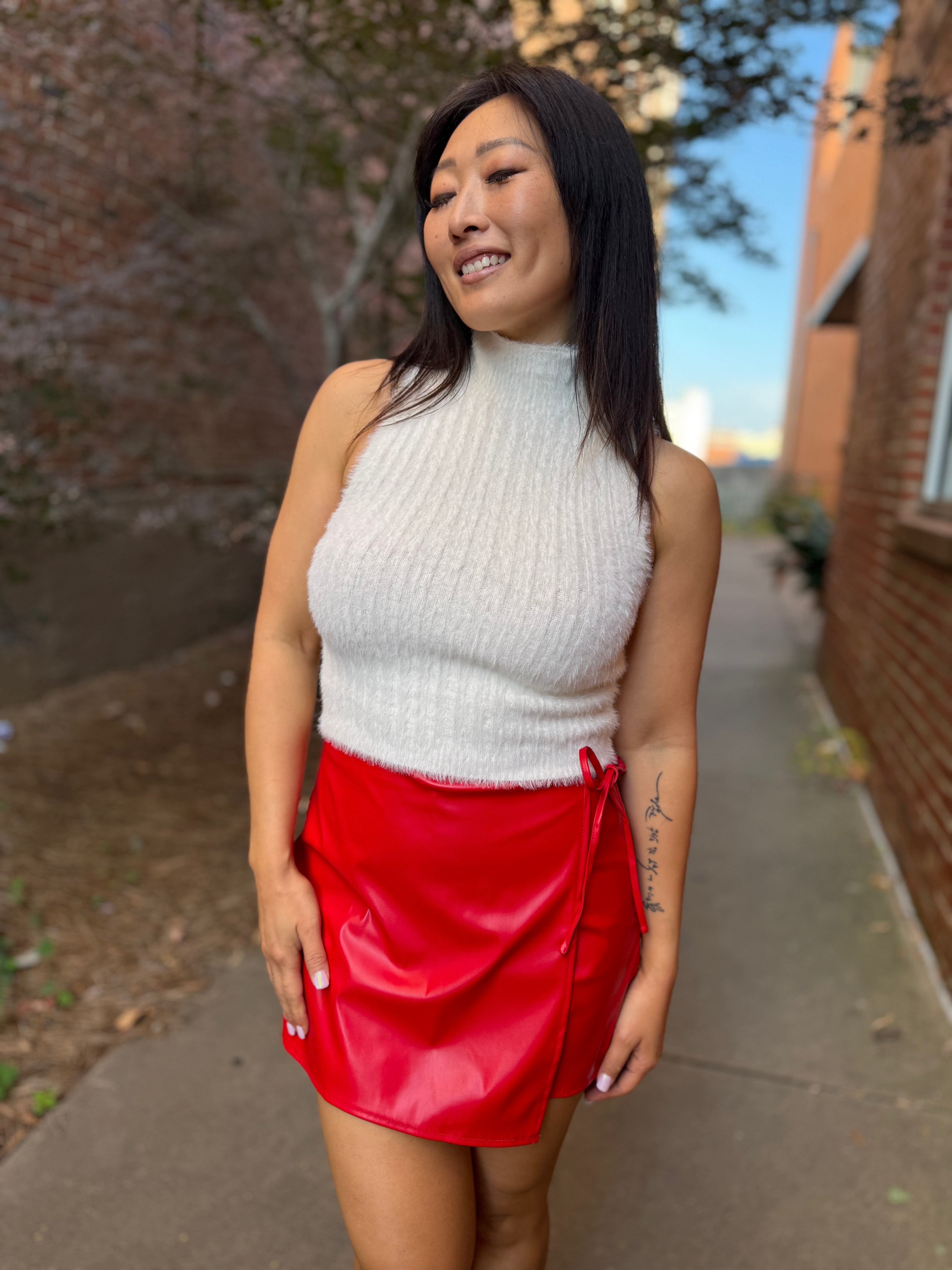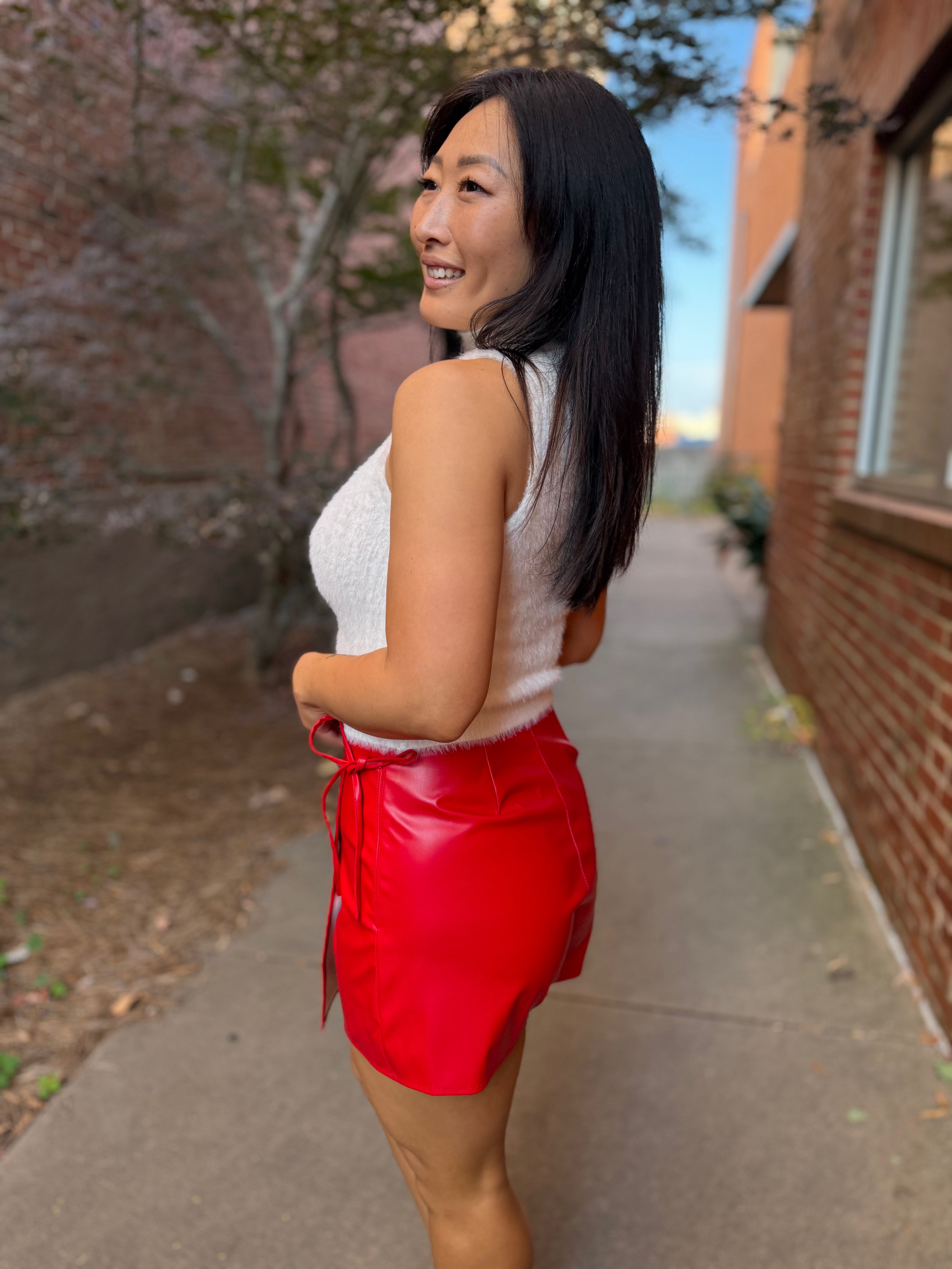 Turn up the edge with the Rebel Wrap Faux Leather Skort. Designed with a sleek wrap front, playful side ties, and a flattering mini length, this skort blends the daring look of a skirt with the comfort of shorts. Perfect for nights out or statement-making street style, it’s your go-to piece for bold, confident dressing.