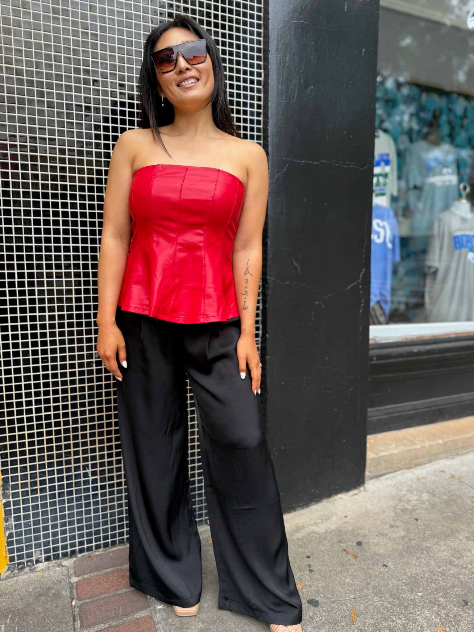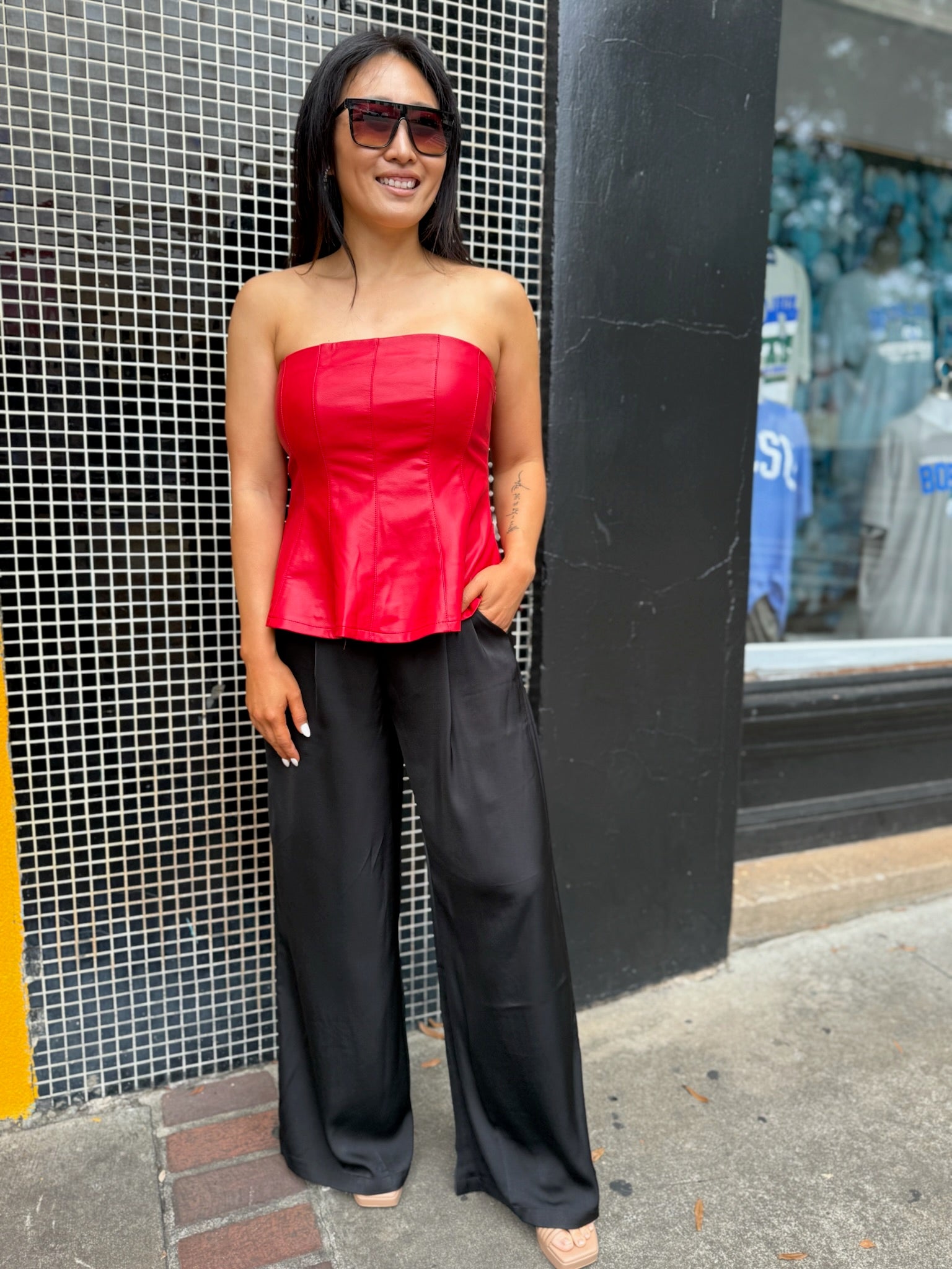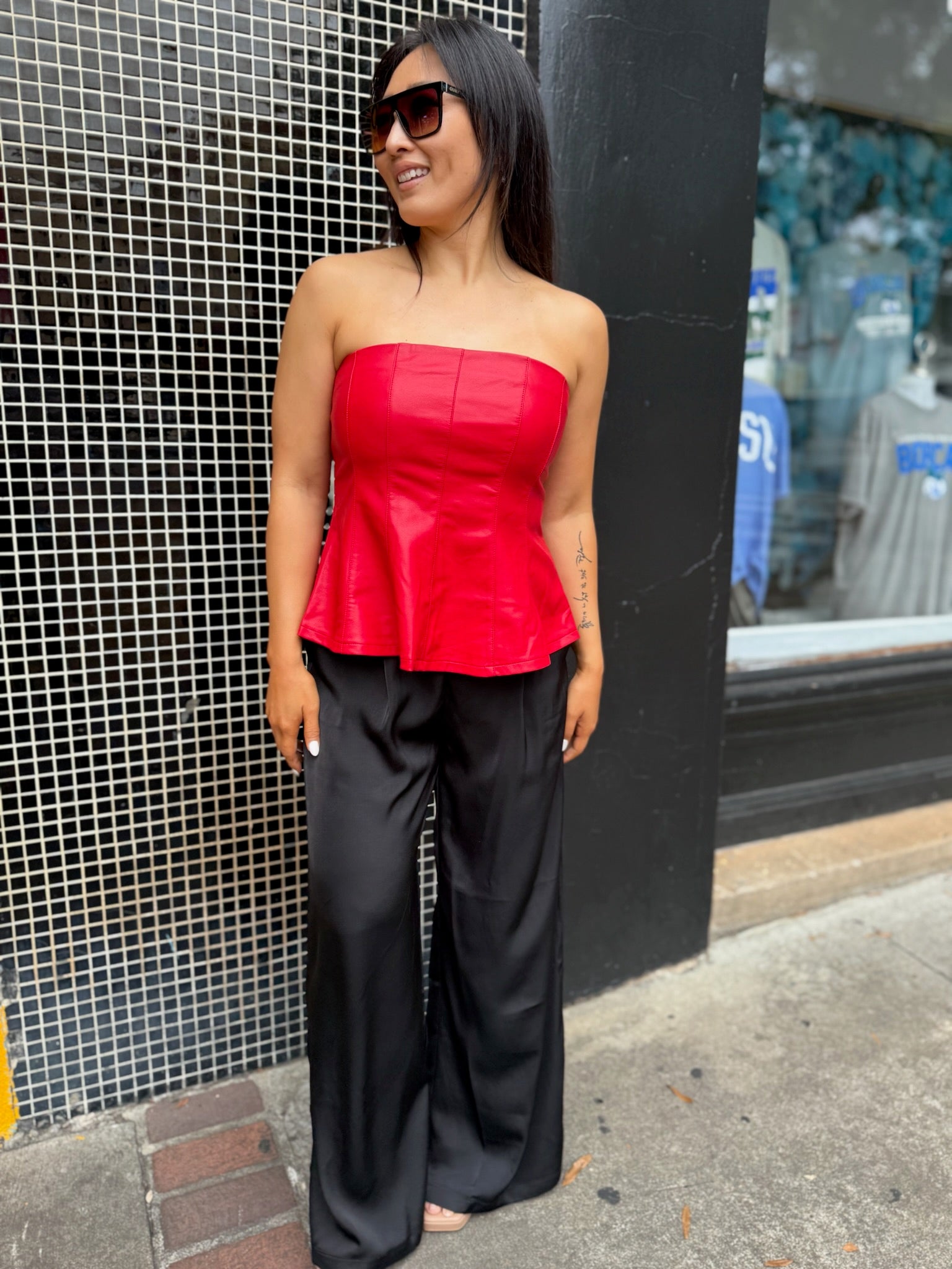 The Red Lucia PU Off Top is a bold and sophisticated statement piece crafted from sleek faux leather. Designed to turn heads, the Lucia PU Off Top features an off-the-shoulder style and an A-line shape that flatters the waist while adding a touch of drama. Perfect for pairing with skirts or tailored pants for a chic night-out look.
