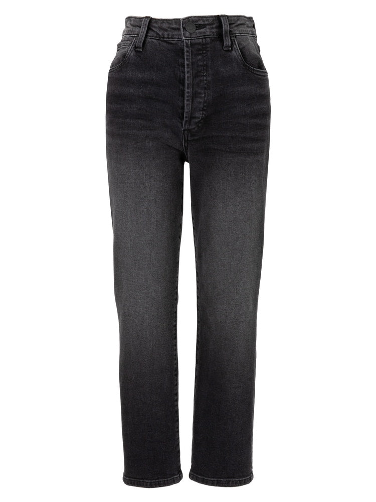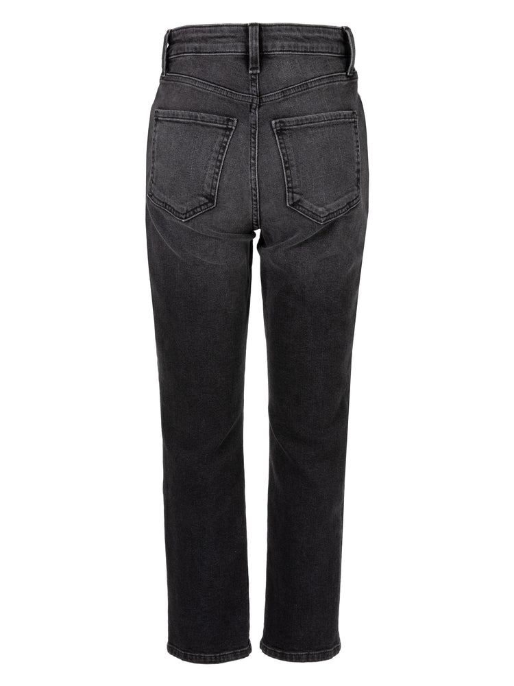 Rosa High Rise Vintage Black Straight Leg Jeans with Hidden Button Closure