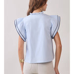 Ruffle Layered Flutter Sleeves Contrast Piping Top