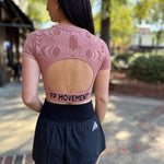 Add a sweet touch to your fitness-focused 'fits with this super versatile tee featured in a sleek, fitted, baby-style silhouette with mesh piecing and cutout detail at back for a functional and femme finish.