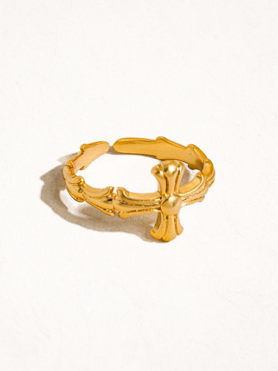 Ruth 18K Gold Vintage Adjustable Cross Ring