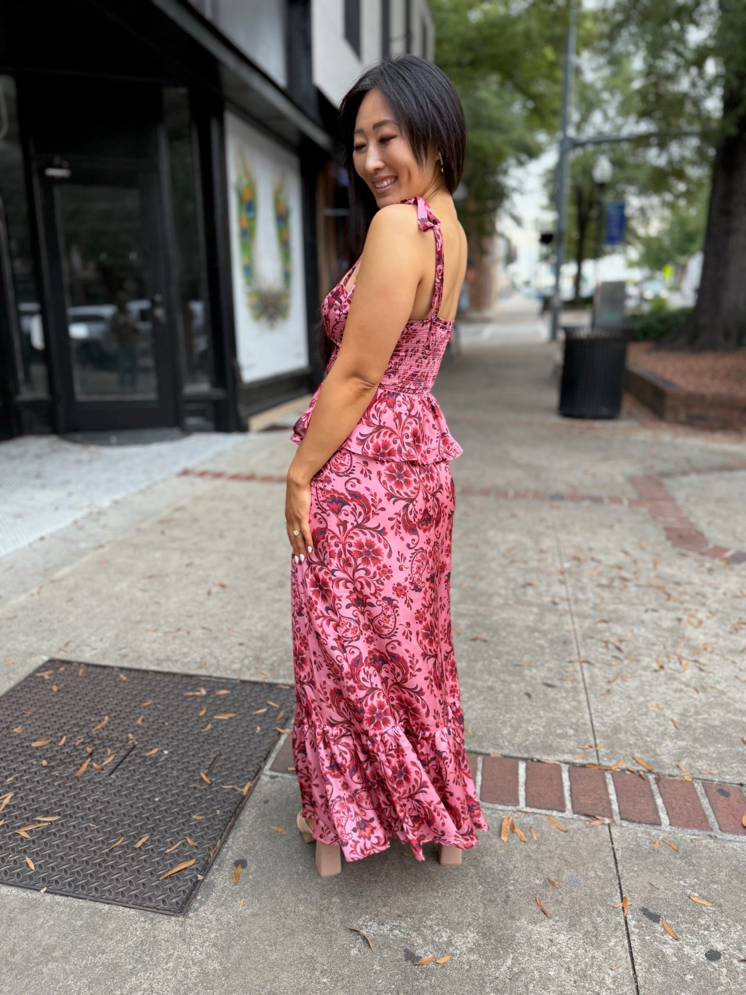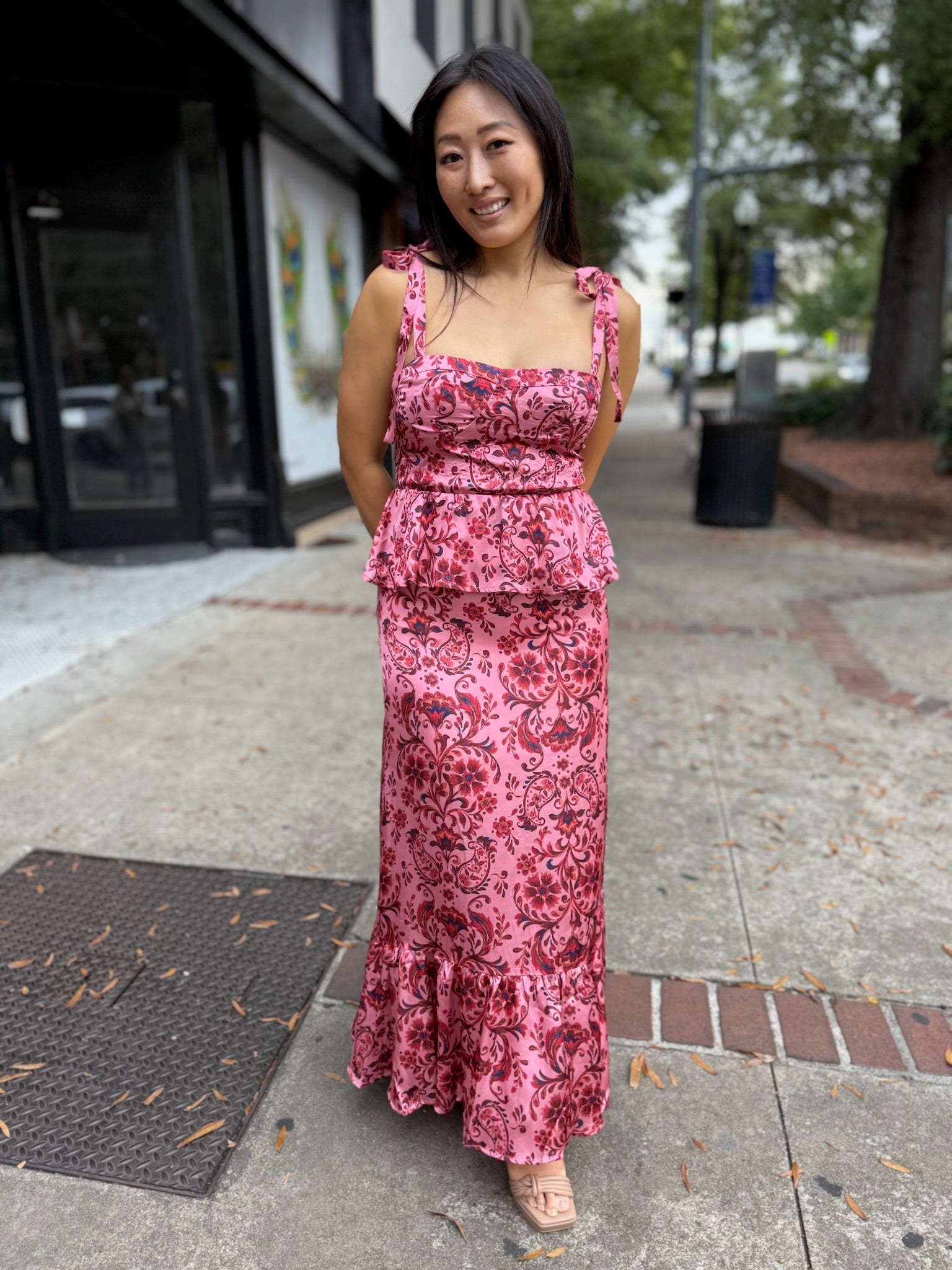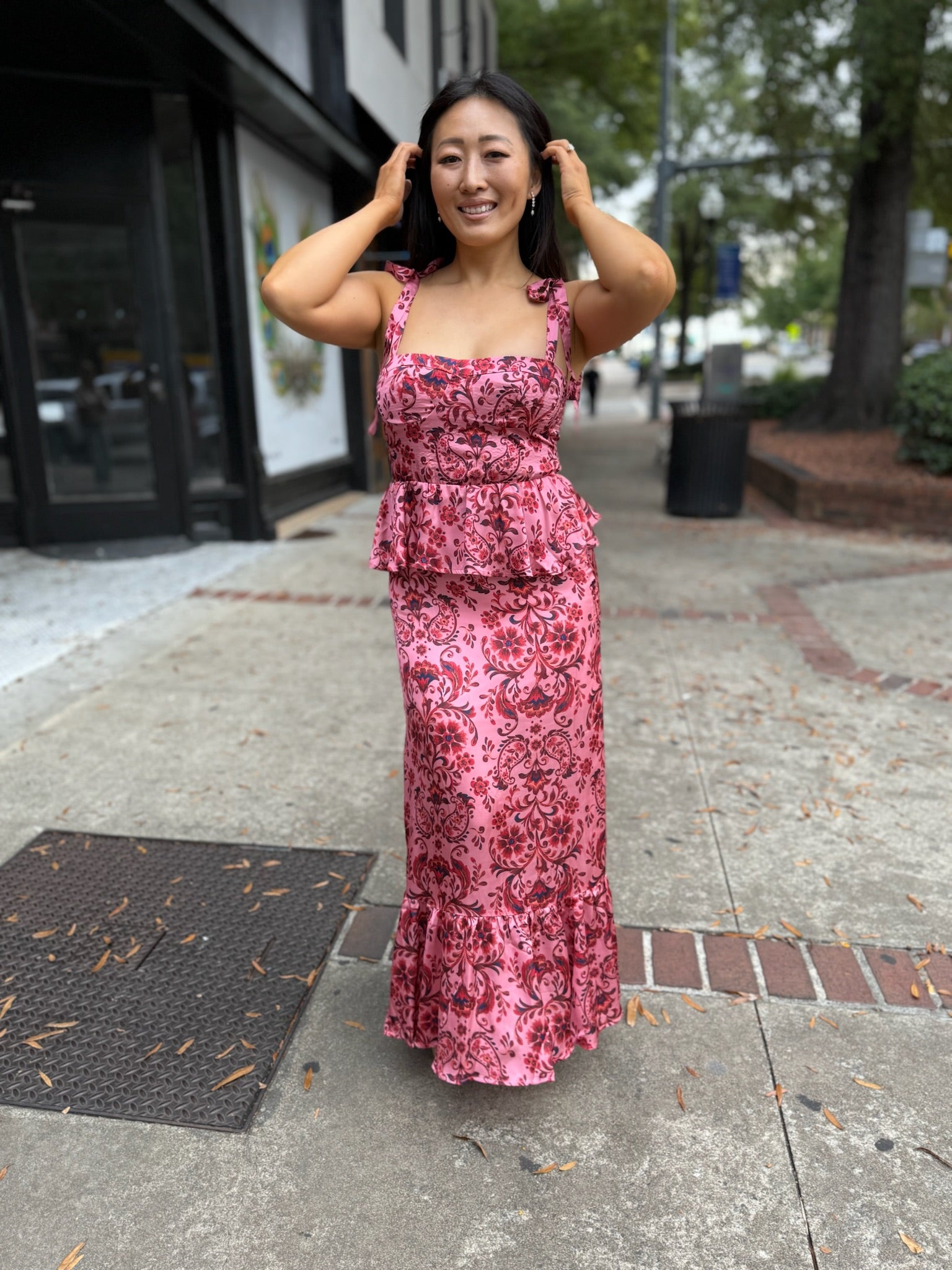 The Salmon Red Leslie Ruffle Dress is a romantic statement piece with a bold, intricate print and a flattering peplum waist. Designed for both elegance and comfort, the Leslie Ruffle Dress features an adjustable strap for a perfect fit and a graceful ruffled hem for added movement. Ideal for weddings, parties, or any special occasion where you want to stand out.