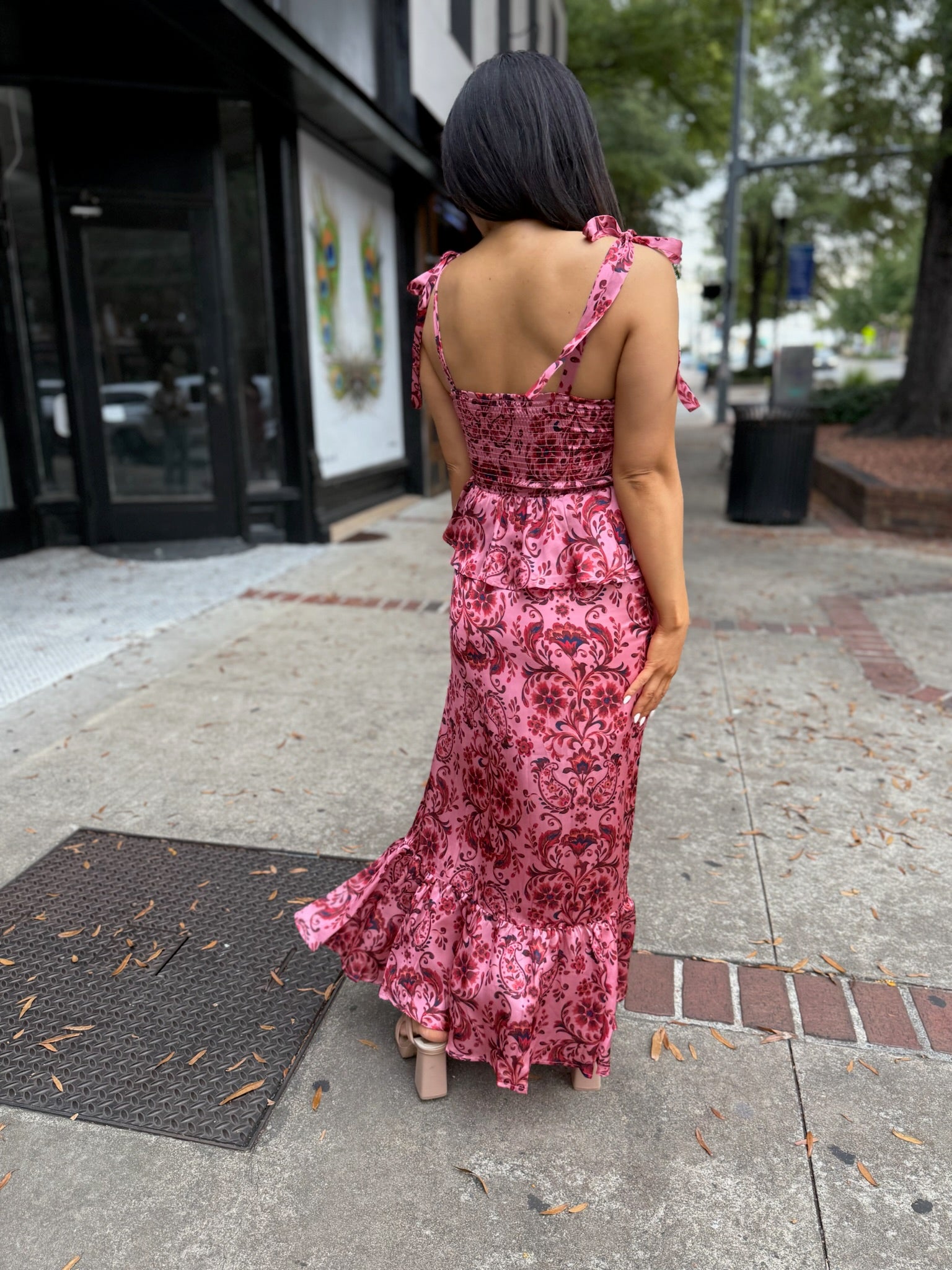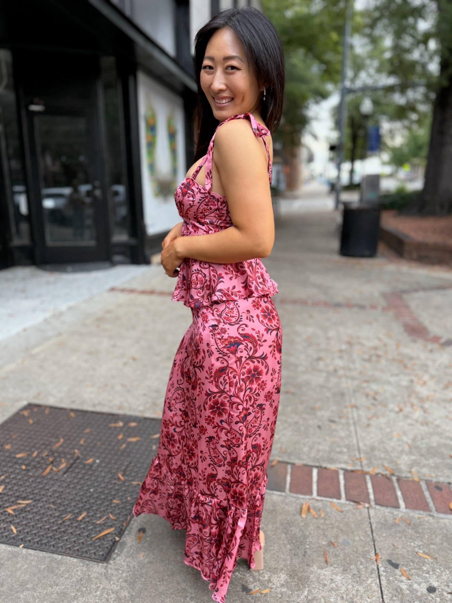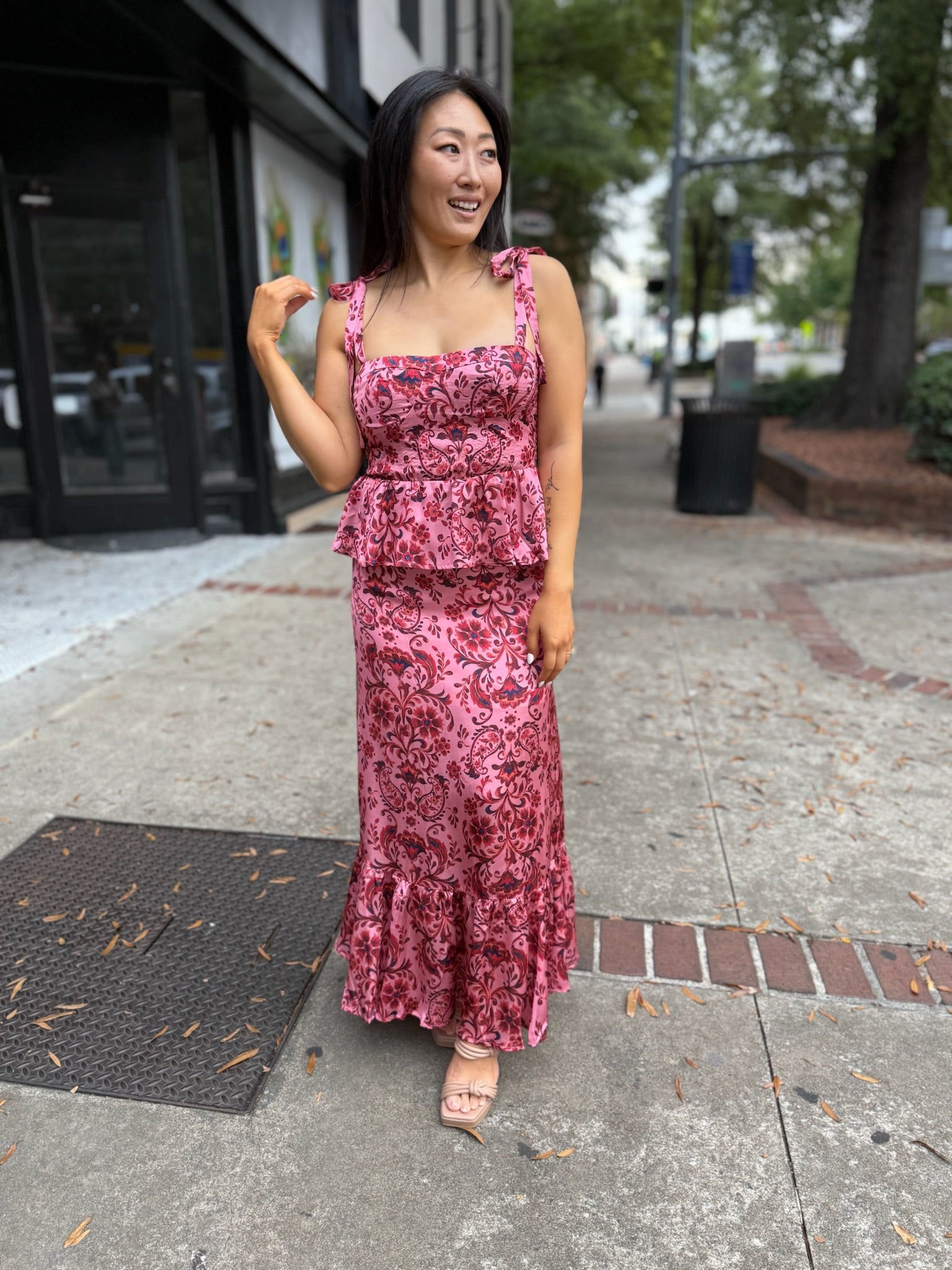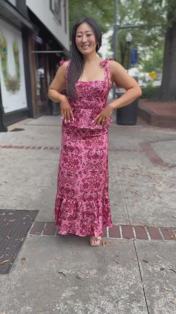 The Salmon Red Leslie Ruffle Dress is a romantic statement piece with a bold, intricate print and a flattering peplum waist. Designed for both elegance and comfort, the Leslie Ruffle Dress features an adjustable strap for a perfect fit and a graceful ruffled hem for added movement. Ideal for weddings, parties, or any special occasion where you want to stand out.