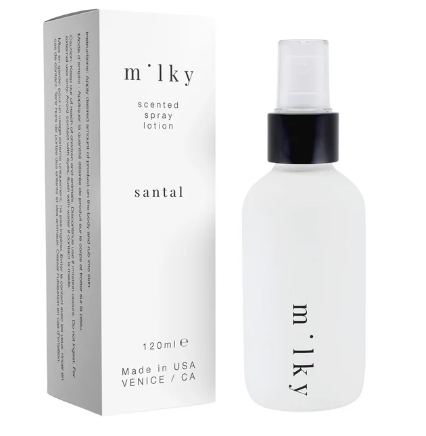 Santal Milky Spray Lotion is a luxurious body moisturizer that envelopes your skin in a captivating and sensual blend of spicy, woody, and aromatic notes. The fragrance opens with the warm and vibrant essence of cardamom, setting a spicy and invigorating tone. At its heart, delicate floral notes of orchid mingle with the luscious fruitiness of cassis, adding a touch of sophistication and intrigue. Finally, the scent deepens with the rich, creamy warmth of amber and the grounding, smooth essence of sandalwood, creating an irresistibly comforting and long-lasting base. This milky spray lotion not only hydrates but also leaves behind a subtle, alluring trail, making it perfect for those who appreciate a blend of elegance and nature's timeless appeal