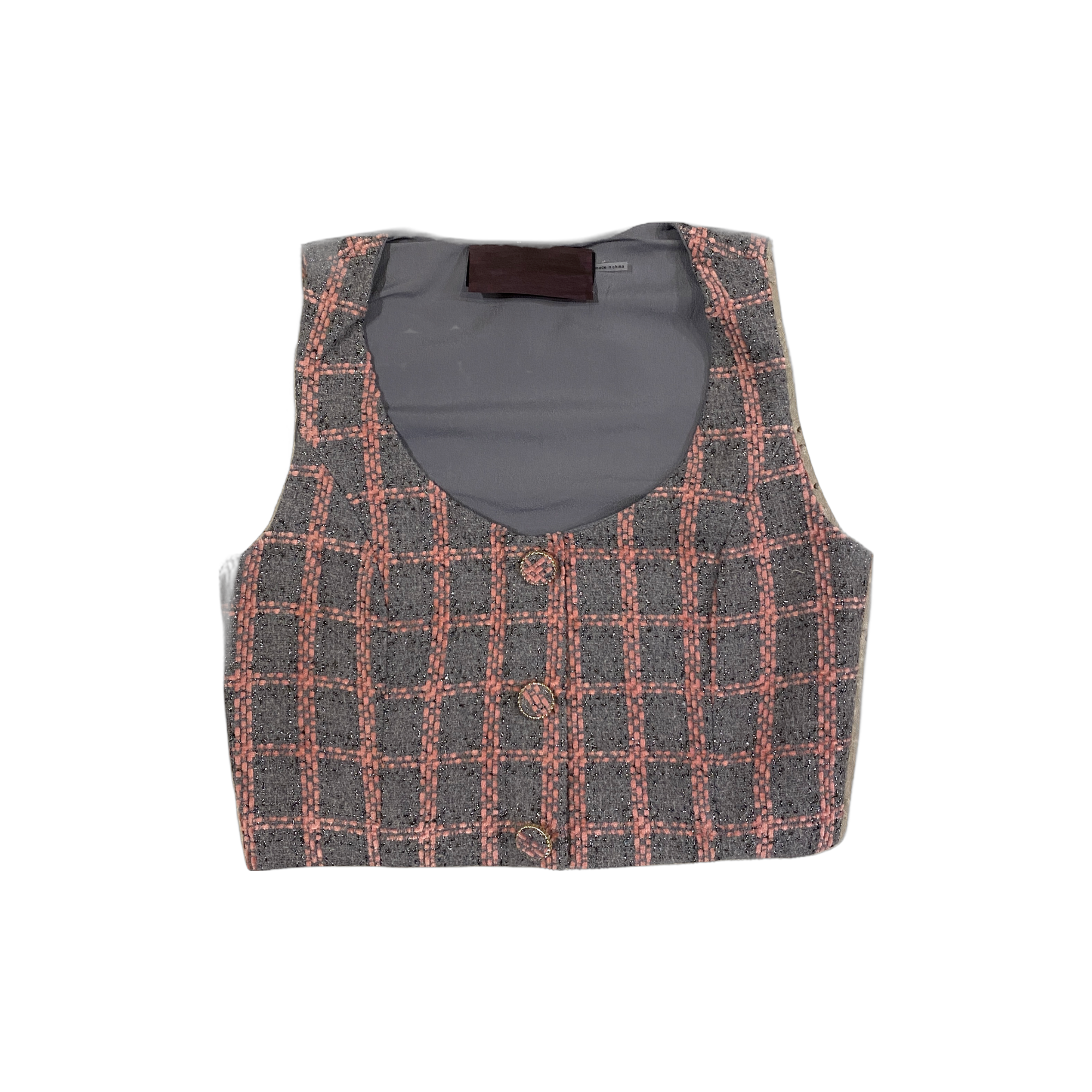 Tweed button up sleeveless top. Match with Say It's So Skirt.