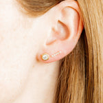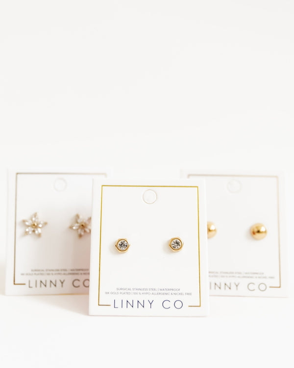 These Addison Clear CZ Stone Stud Earrings offer a sleek, minimalist design with a thin gold hexagon shape and a clear CZ stone embedded at the center. Crafted from 100% surgical-grade stainless steel, these earrings are both lightweight and durable, making them the perfect waterproof staple for everyday wear. The innovative screwback design ensures a secure and snug fit, making them ideal for both adults and teens.