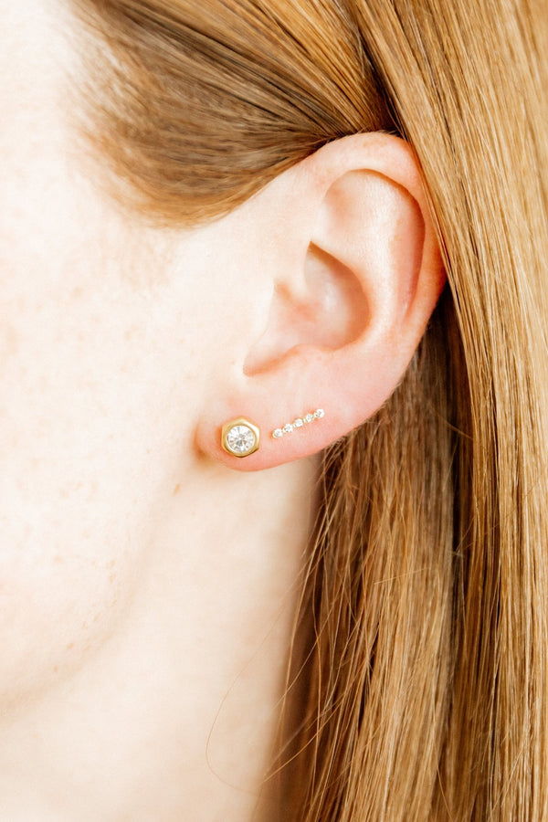 - 8mm thin gold hexagon with a clear CZ stone in the center