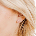 These fun and durable micro-screwback studs are waterproof and perfect for everyday wear. The innovative screwback design provides a secure, snug fit, while the bright pink enamel flower design with a sparkling CZ stone in the center adds a touch of charm. Whether you're looking for a fun accessory for your child or a stylish option for yourself, these studs make a perfect addition to any wardrobe.