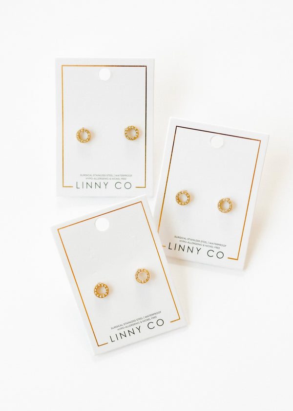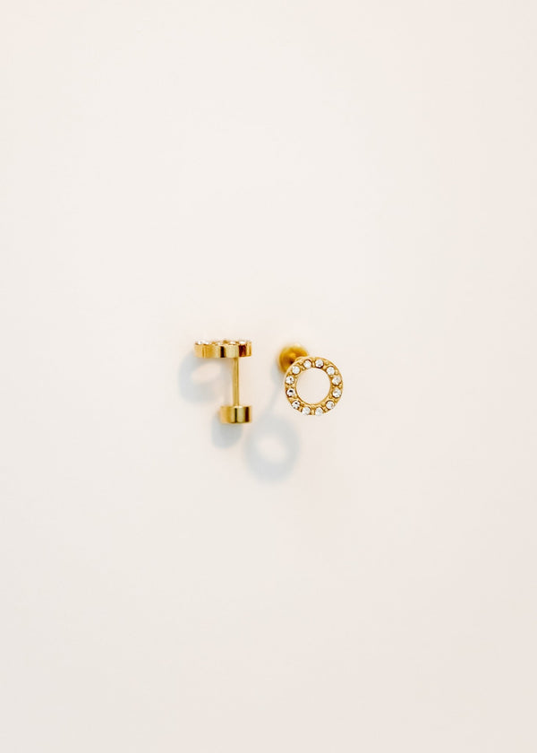 With a timeless design that radiates elegance, the Lainey Gold Stud Earrings feature an 8mm round open circle adorned with small CZ stones for a sparkling, sophisticated touch. Crafted from 100% surgical-grade stainless steel, these earrings are lightweight, durable, and hypoallergenic, perfect for sensitive ears. The innovative screwback design ensures a secure and comfortable fit, making them ideal for both adults and teens.