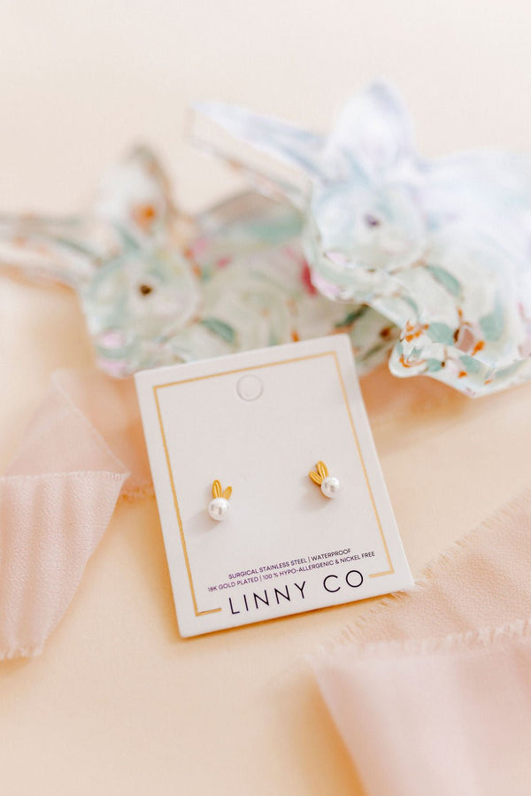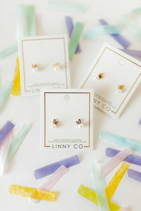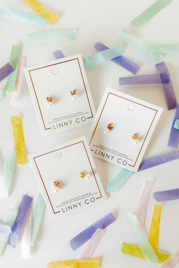 Add a playful touch of charm with the **Heidi Pearl Bunny Stud Earrings**. Featuring a lustrous pearl with gold bunny ears on top, these 9mm studs are the perfect blend of elegance and whimsy. Made from 100% surgical-grade stainless steel, these earrings are lightweight, durable, and hypoallergenic, making them perfect for sensitive ears. The secure screwback design ensures a snug and comfortable fit, making them ideal for both adults and kids. Waterproof and versatile, these earrings are perfect for any occasion, offering both fun and sophistication with every wear. **Where to Wear**: - Ideal for spring or Easter events, family gatherings, or casual outings. - Perfect for adding a playful touch to workwear or casual everyday looks. - Comfortable enough to wear all day, including while sleeping. **Features**: - Pearl with gold bunny ears design, 9mm in size - Waterproof and durable for everyday wear - Secure screwback design for a snug and comfortable fit - 100% surgical-grade stainless steel, nickel- and copper-free
