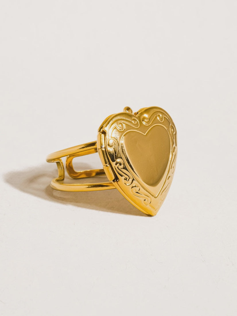 The 18K Non-Tarnish Locket Heart Ring is a stylish and functional piece of jewelry with the following key features: