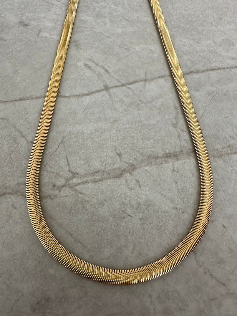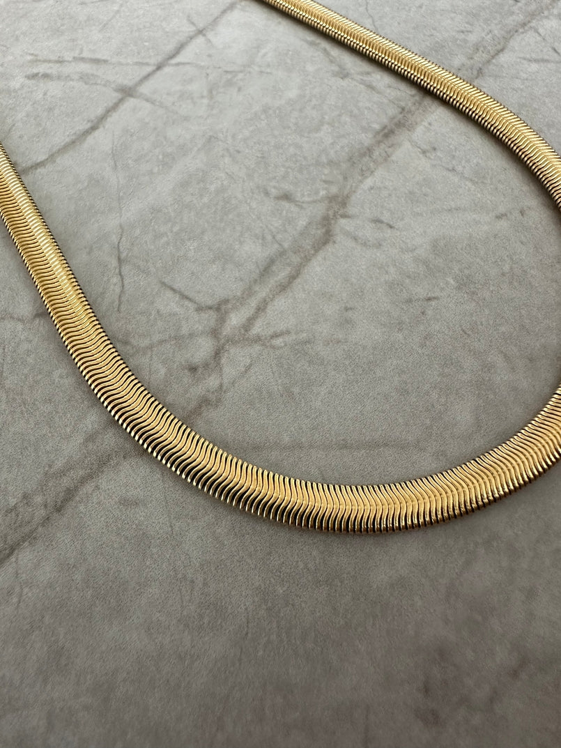 Turn heads with the Serpent Luxe Chain! Bold and elegant, this thick snake chain adds a touch of sleek sophistication to any outfit. Wear it solo for a statement look or layer it for ultimate versatility!