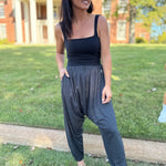 Fit: Relaxed fit; onesie silhouette; square neck; bottom hem hits above ankle