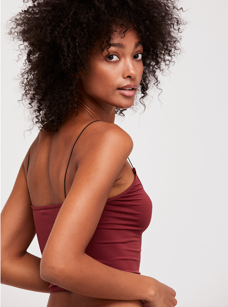 American made from our Signature Seamless fabric, this stretchy brami features elastic straps and a ribbed hem.