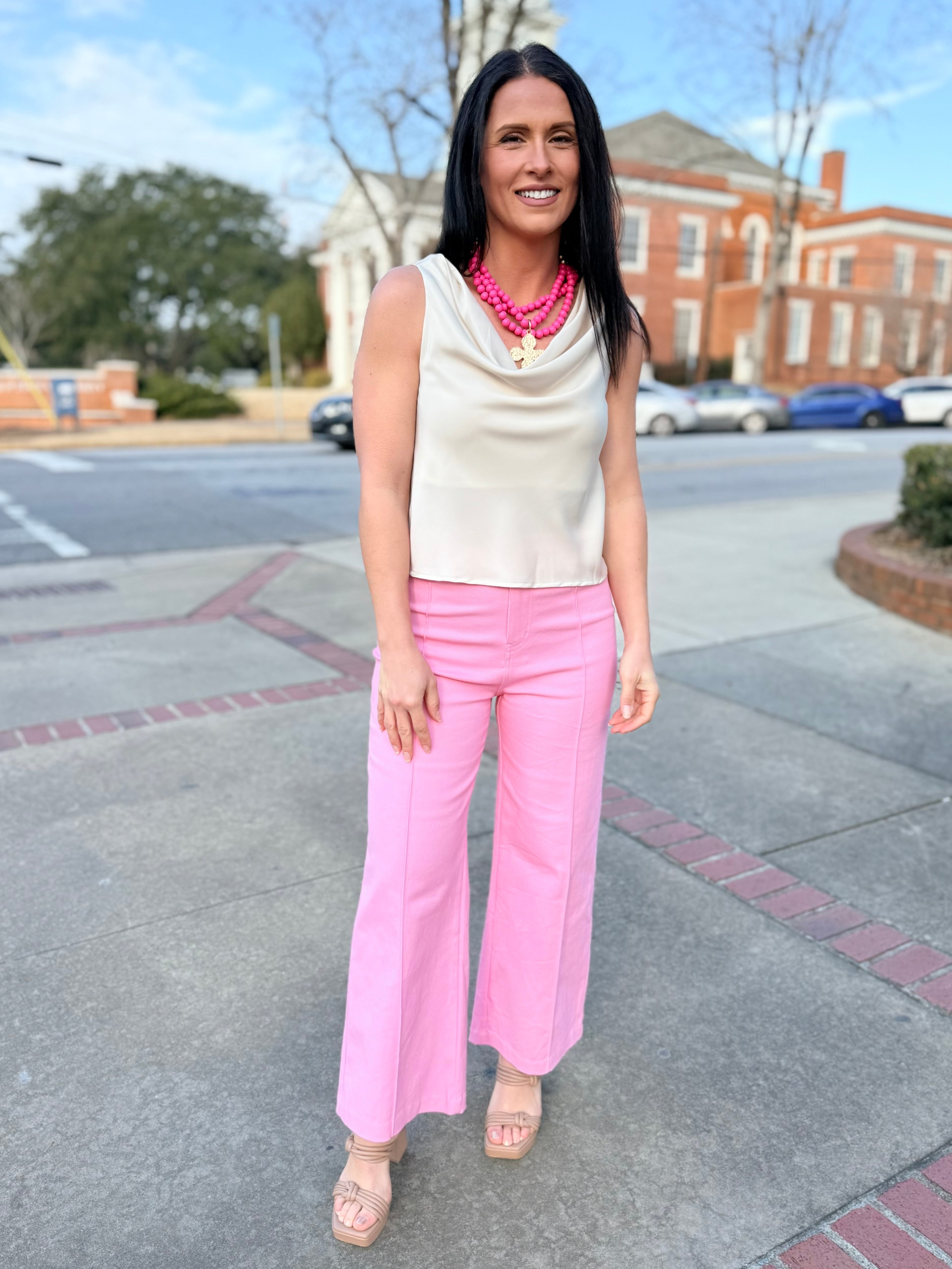 Effortlessly chic and endlessly versatile. The Solid High Rise Wide Leg Pants are a must-have for any wardrobe. Featuring a flattering high-rise fit and flowing wide-leg silhouette, they offer comfort without compromising style. Perfect for dressing up with heels or keeping it casual with sneakers, these pants transition seamlessly from workdays to weekend outings.