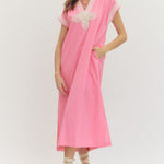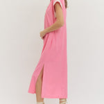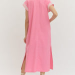 Solid Short Sleeve Midi Dress - Pink