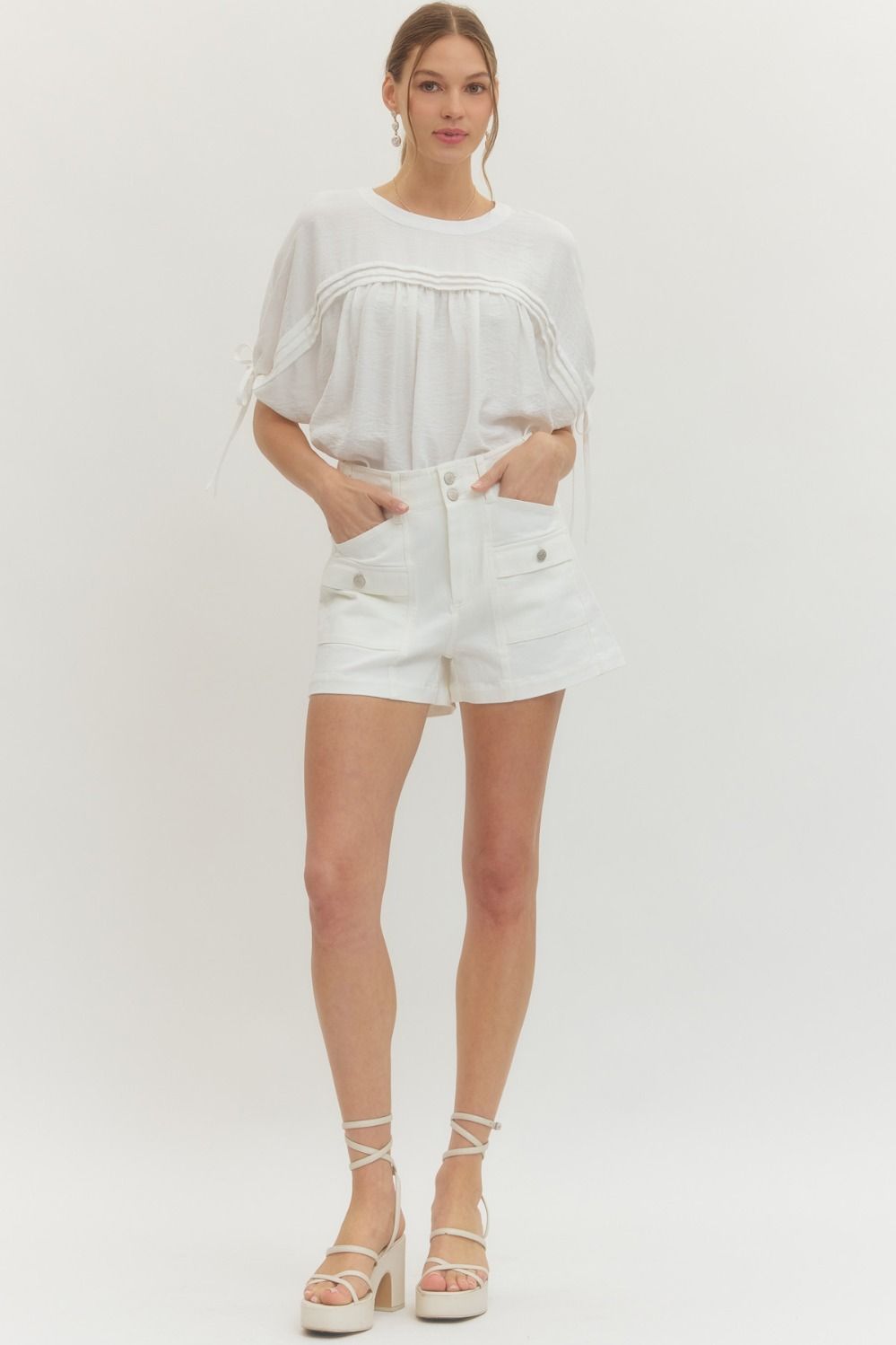 Clean, comfortable, and effortlessly stylish. The Solid Woven Shorts are a warm-weather essential for easy everyday wear. Designed with a flattering fit and lightweight woven fabric, they offer all-day comfort with a polished look. Perfect for pairing with tees, blouses, or tanks, these versatile shorts take you from casual outings to relaxed weekends with ease.