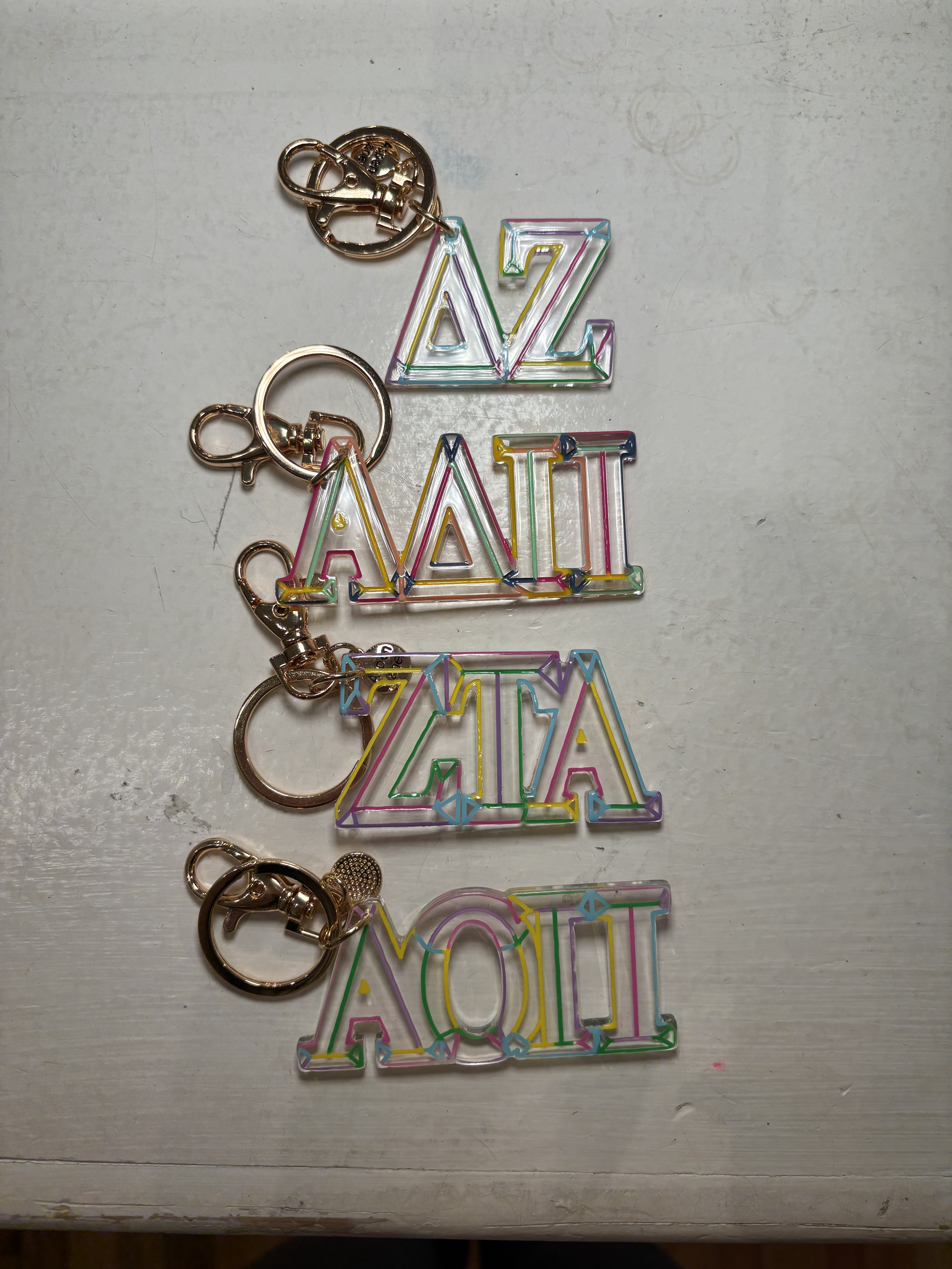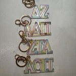 Acrylic with colorblock painted surface that coordinates with our colorblock canvas pouches Sorority greek items perfect for rush, recruitment, big sis/lil sis gifting needs.