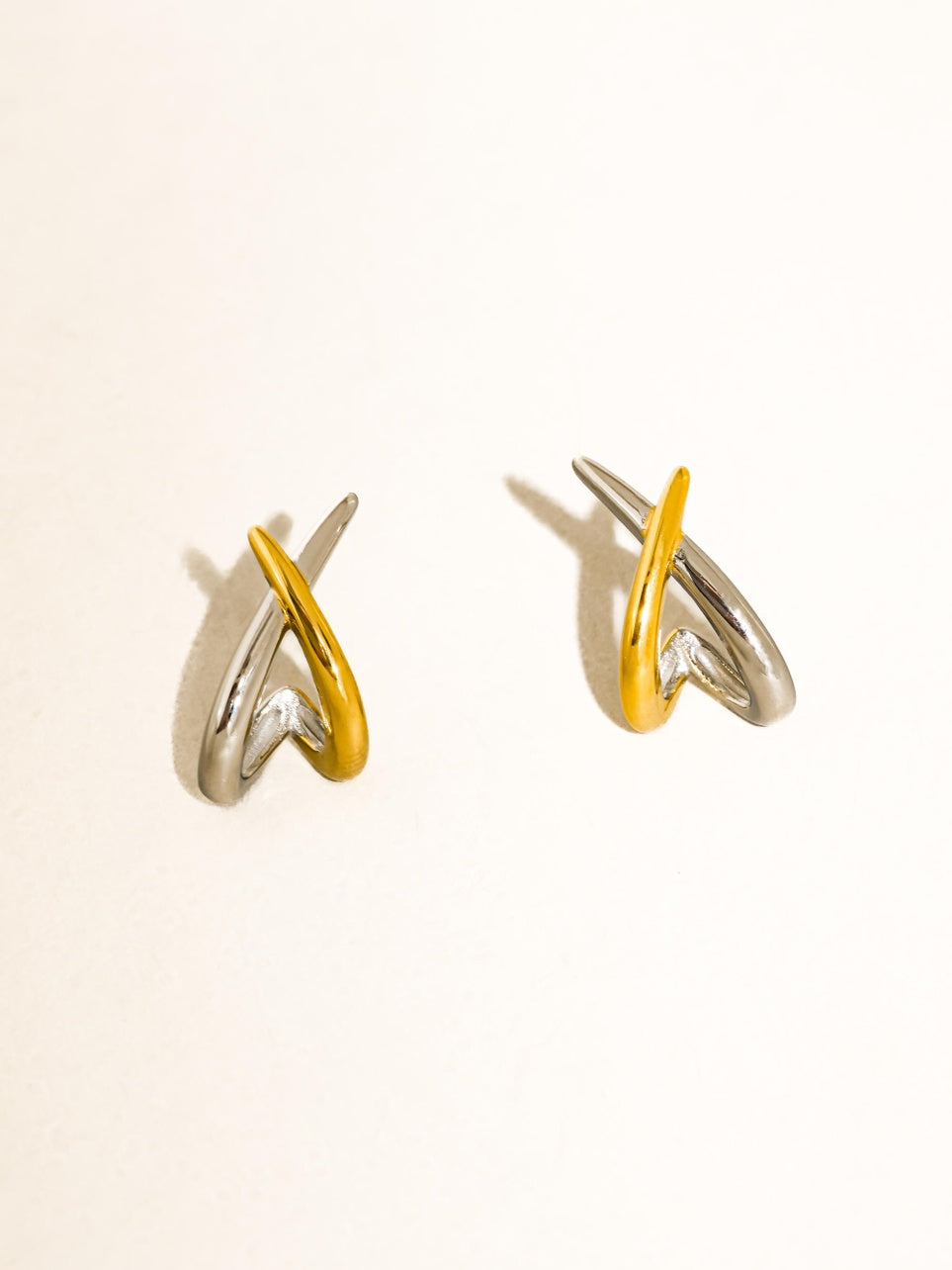 Staven 18K Gold Two-Tone Crossover Earrings