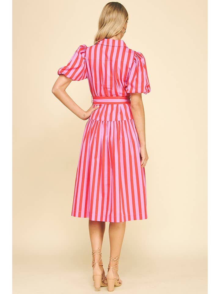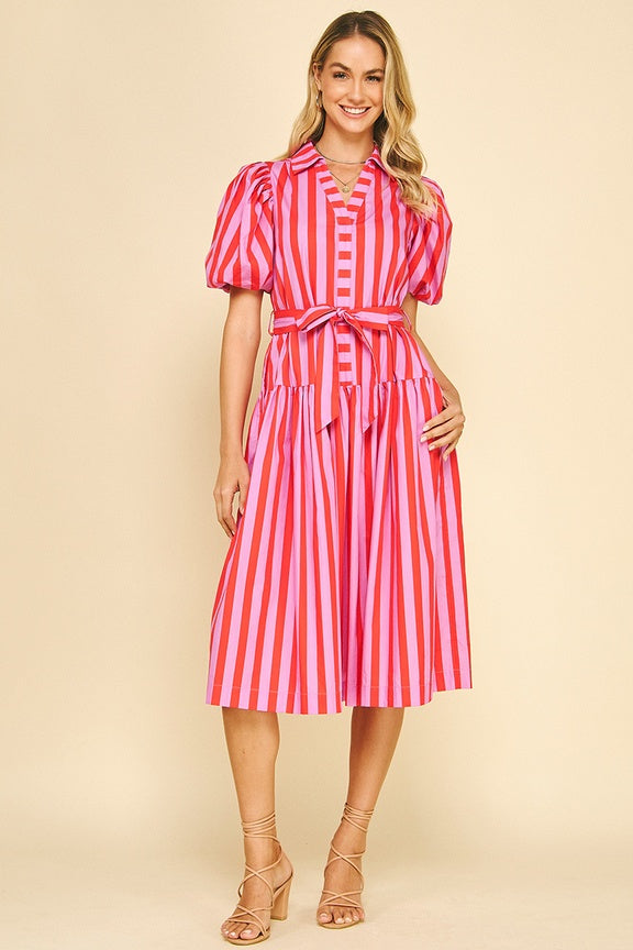 Striped Balloon Sleeve Midi Dress