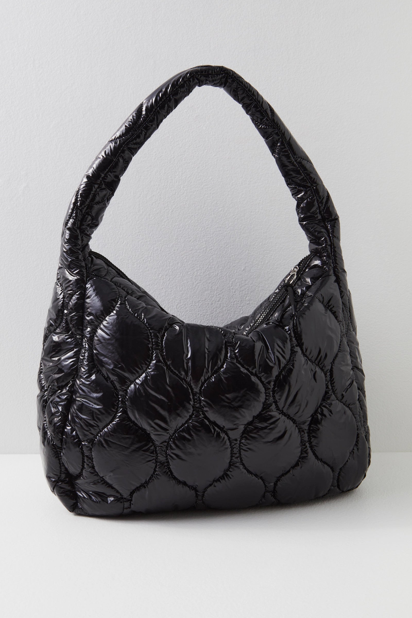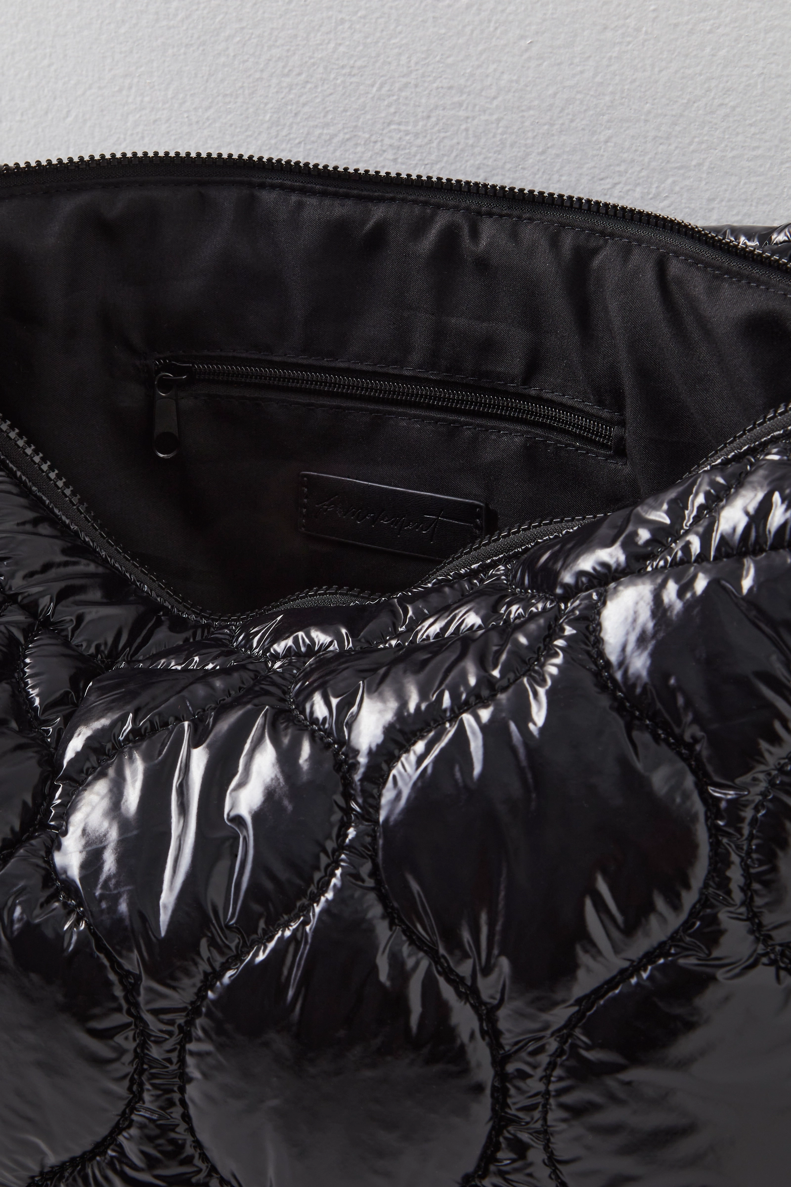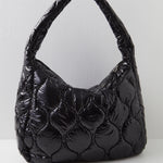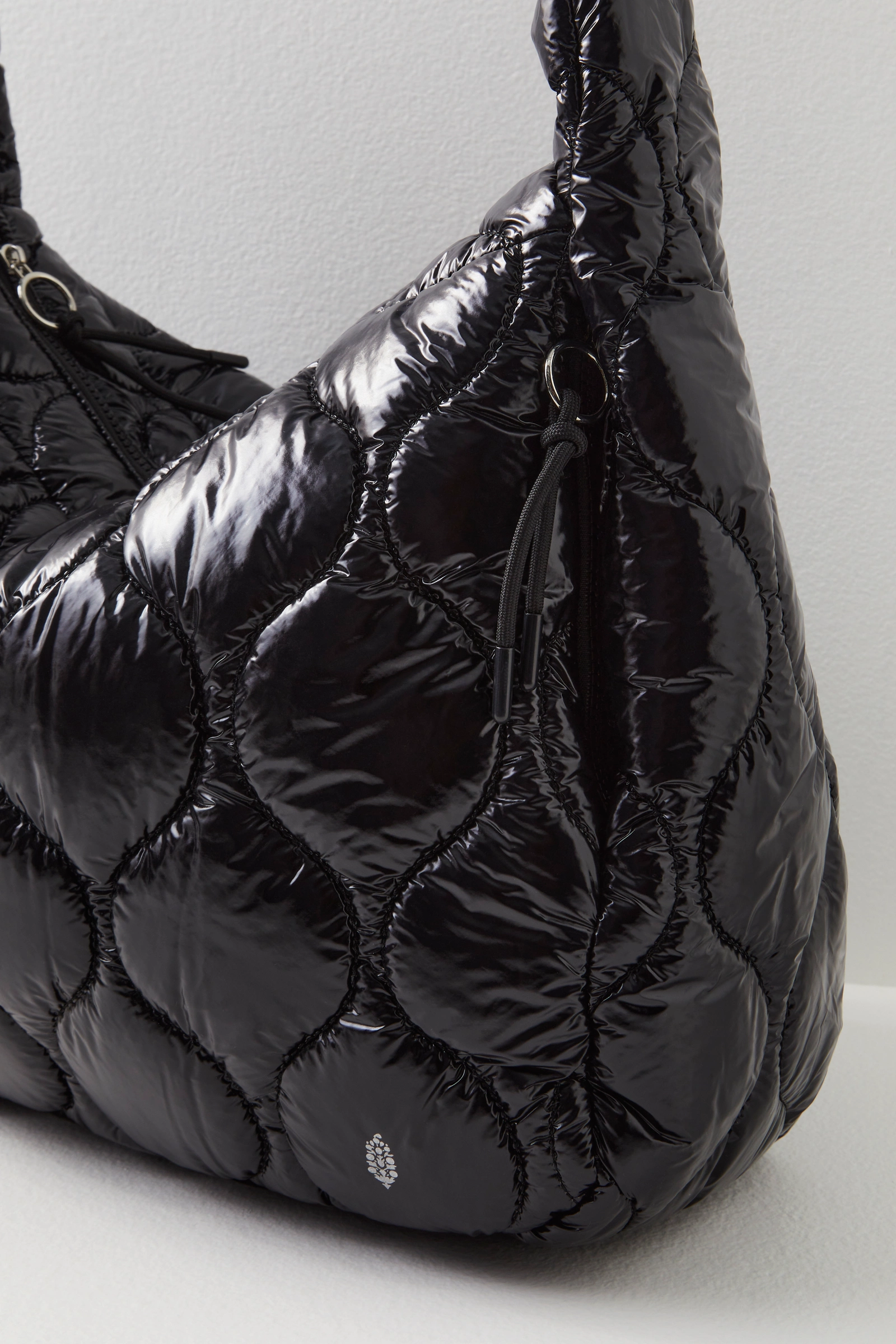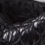 Just as effortless as it is essential, this so cool carryall bag is featured in an oversized style and quilted shiny fabrication to add an added special touch.