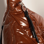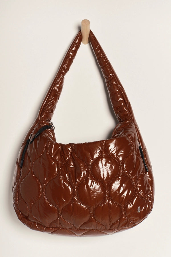 Just as effortless as it is essential, this so cool carryall bag is featured in an oversized style and quilted shiny fabrication to add an added special touch.