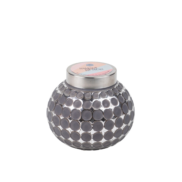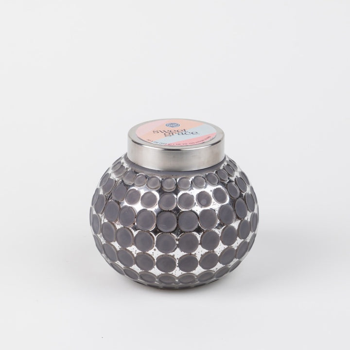 Make Bridgewater's best-selling fragrance a part of your everyday decor with the Sweet Grace Collection #004 candle, featuring glimmering metallic tones, a bubbled glass form, and a silver lid. Every Bridgewater candle is meticulously crafted with a proprietary soy-blend wax formulation that ensures a clean, even burn and an exceptional scent.Soy-blend wax poured in Spartanburg, South Carolina, U.S.A.
