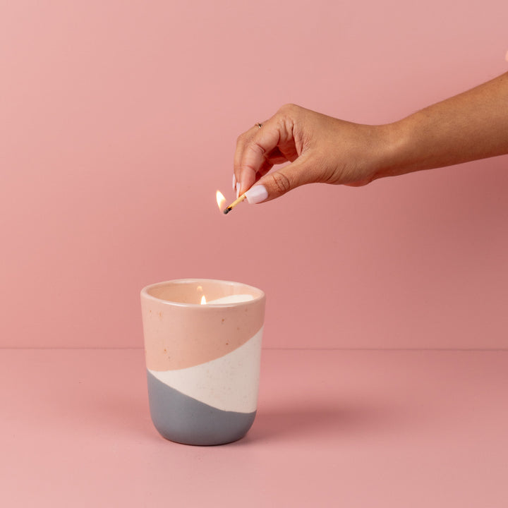 A sweet, delicate pink and gray color scheme adorns this lovely ceramic vessel that's brimming with our #1 best-selling fragrance, Sweet Grace. Every Bridgewater candle is meticulously crafted with a proprietary soy-blend wax formulation that ensures a clean, even burn and an exceptional scent.