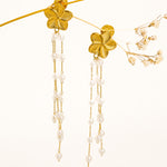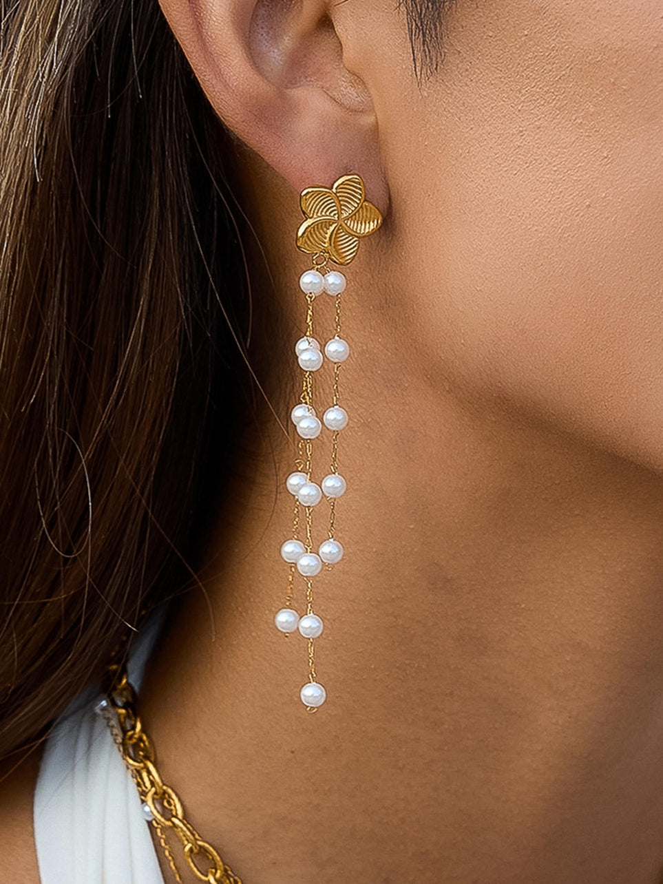 Thalina 18K Gold Flower Pearl Dangle Earrings