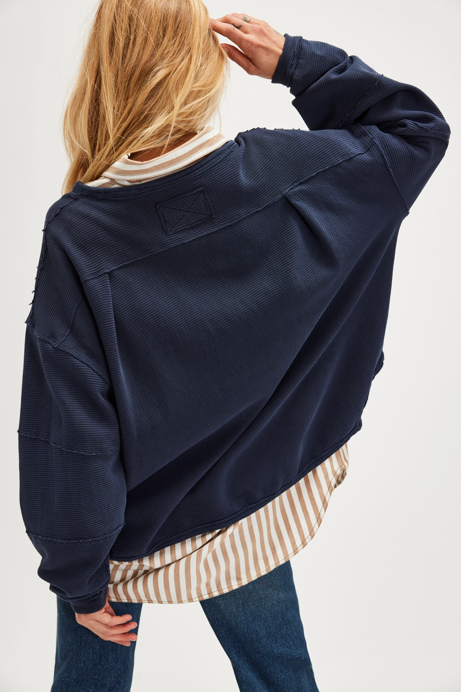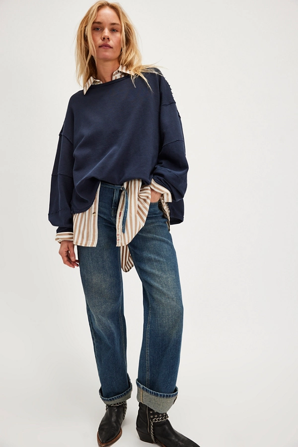 An elevated take on the classic tee, this long-sleeve from the We The Free collection features a ribbed fabrication and slouchy silhouette with defined seams and a scoop-neckline.
