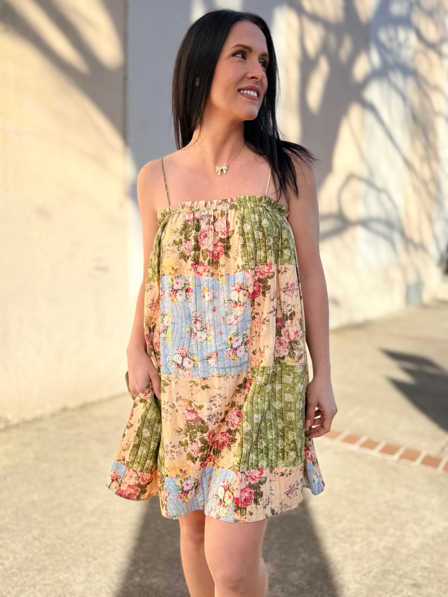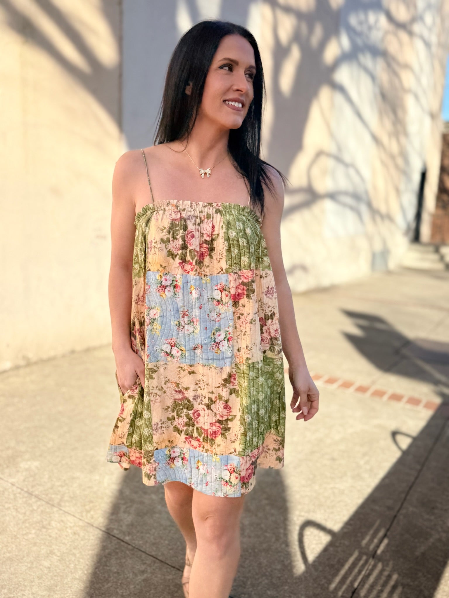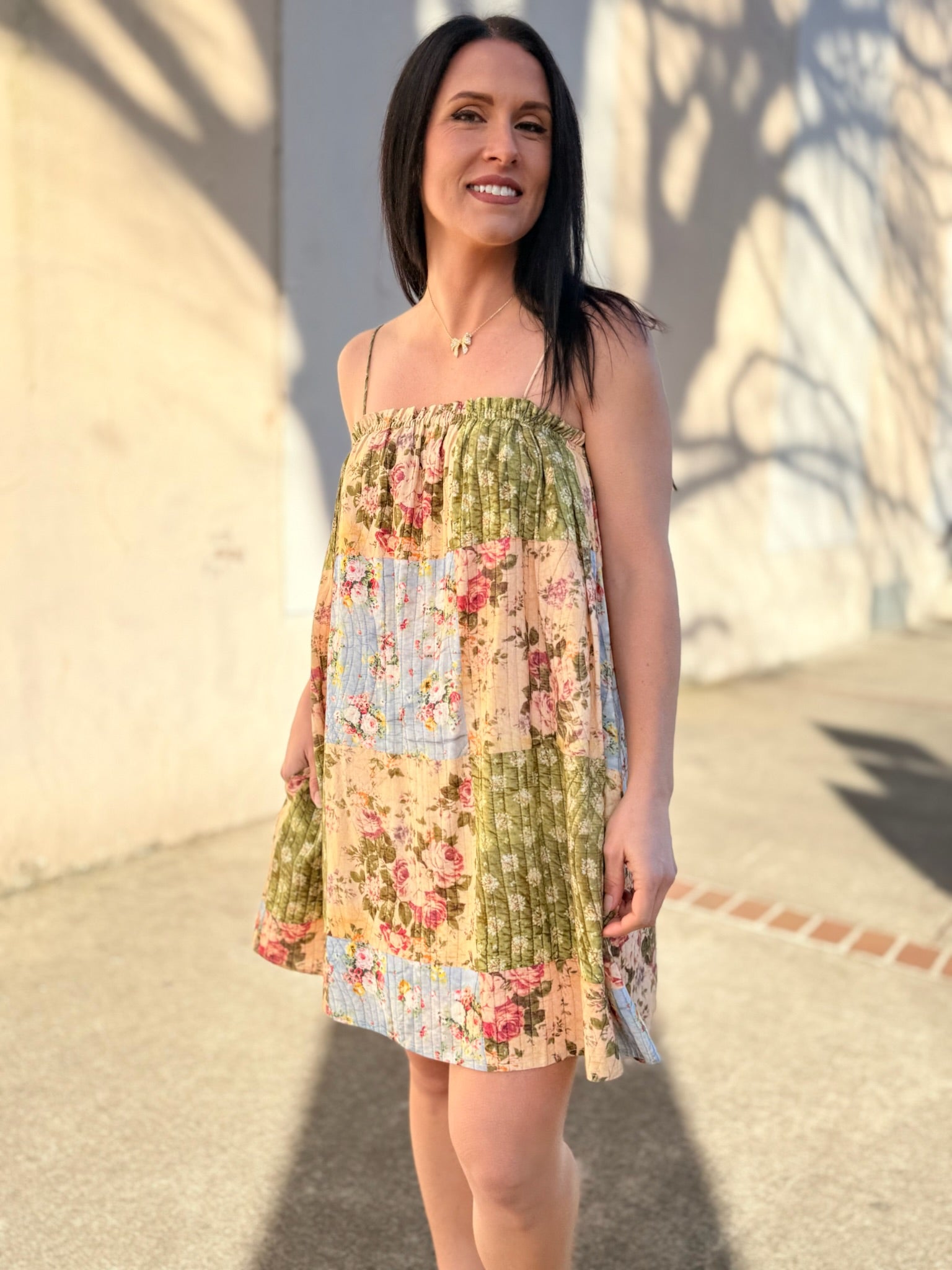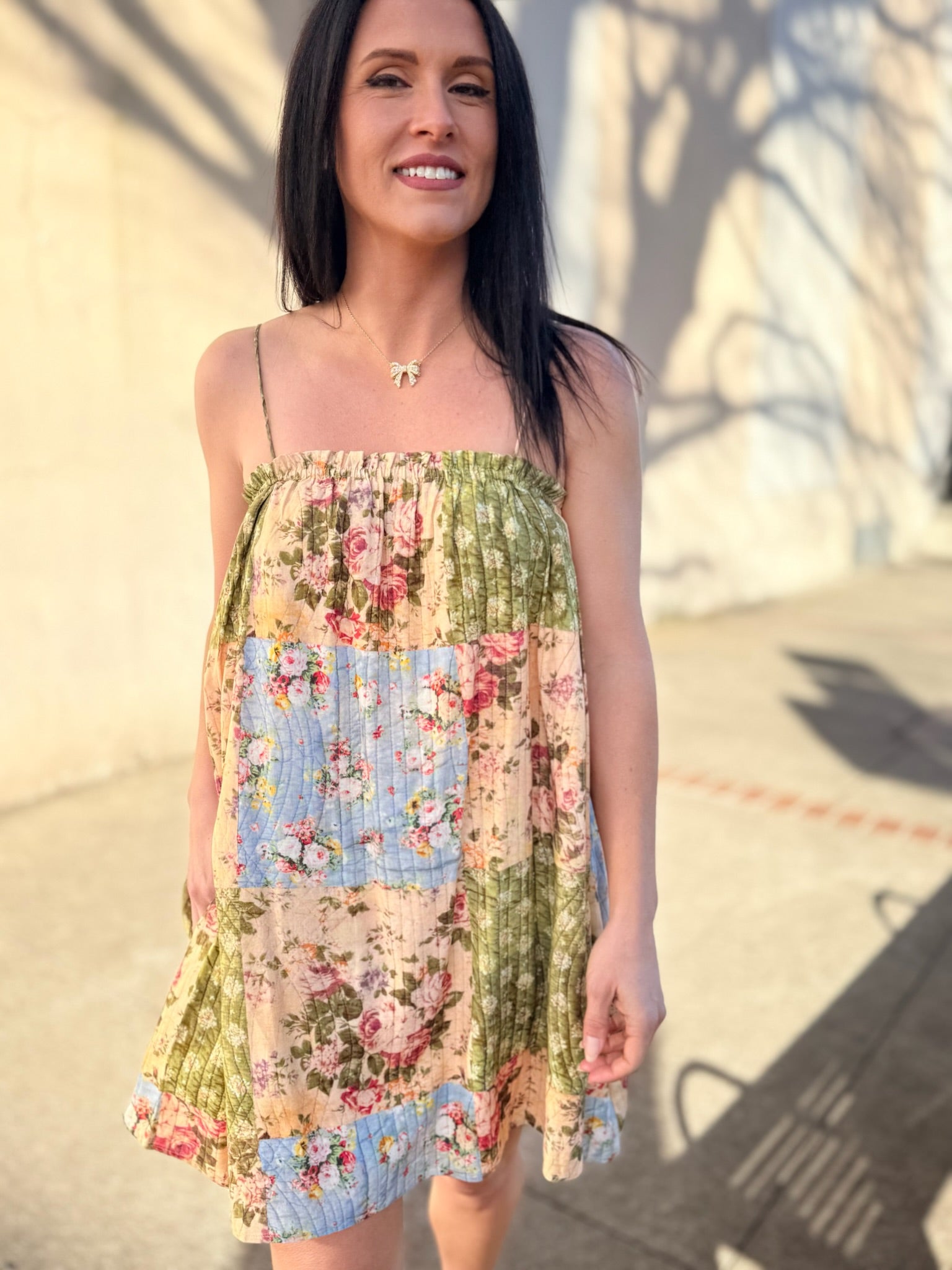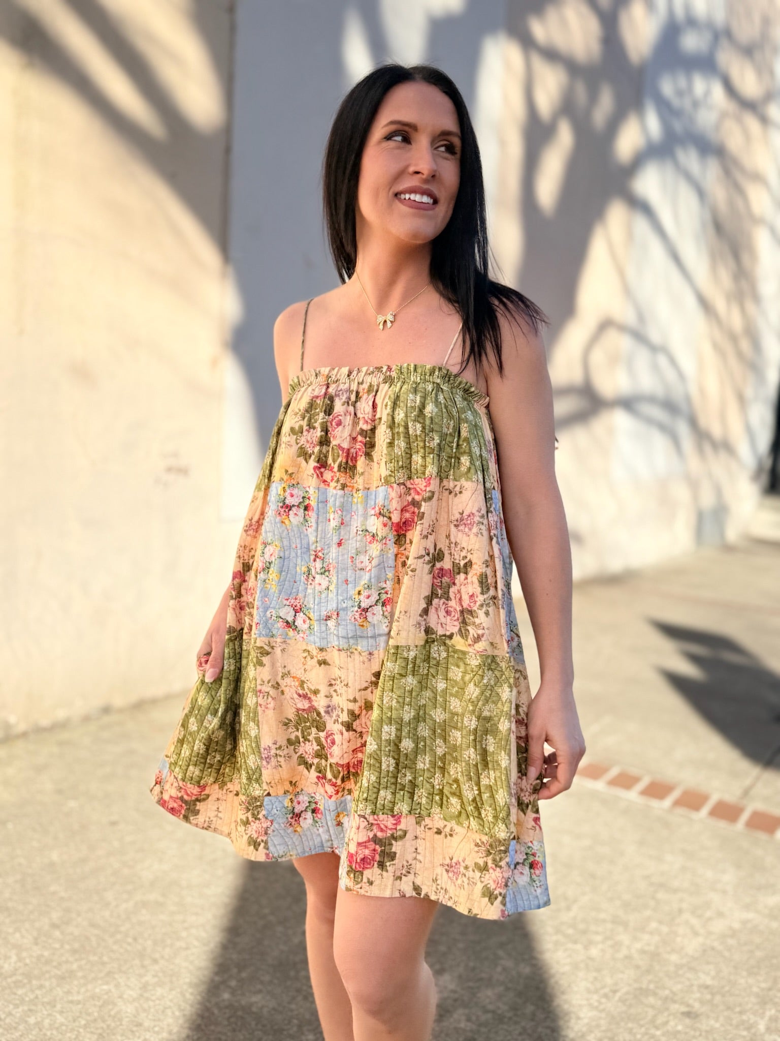 Playful and effortlessly feminine, the Treasured Trove Mini Dress by Sadie & Sage brings a fresh, eclectic feel to spring styling. Designed with a charming patchwork-inspired mix of prints, this mini dress features a relaxed, easy silhouette that’s perfect for warm days. The lightweight feel and breezy shape make it ideal for casual outings, vacations, or weekend plans. Style it with sandals or sneakers for a laid-back look, or dress it up with accessories for a fun, elevated finish.