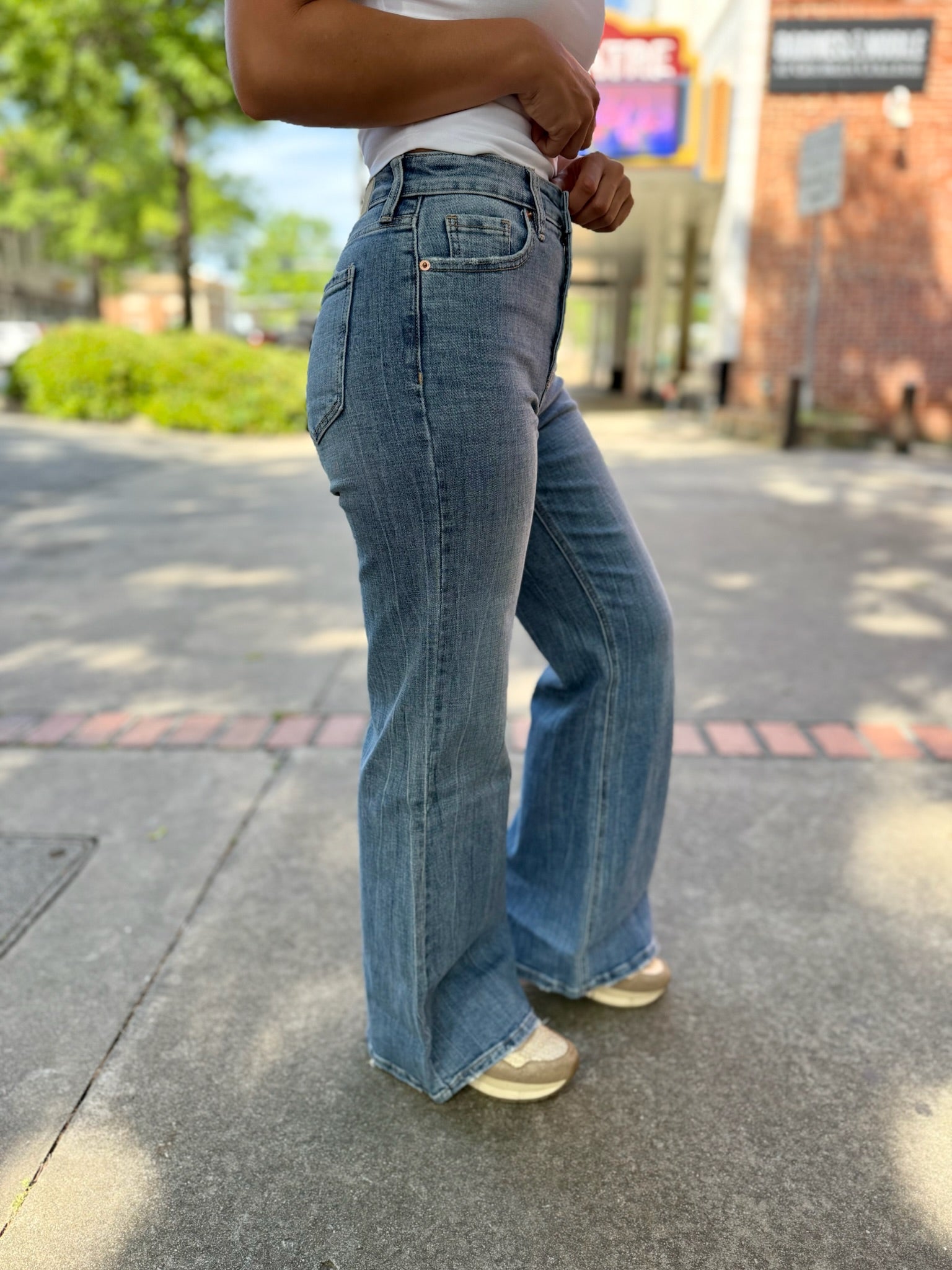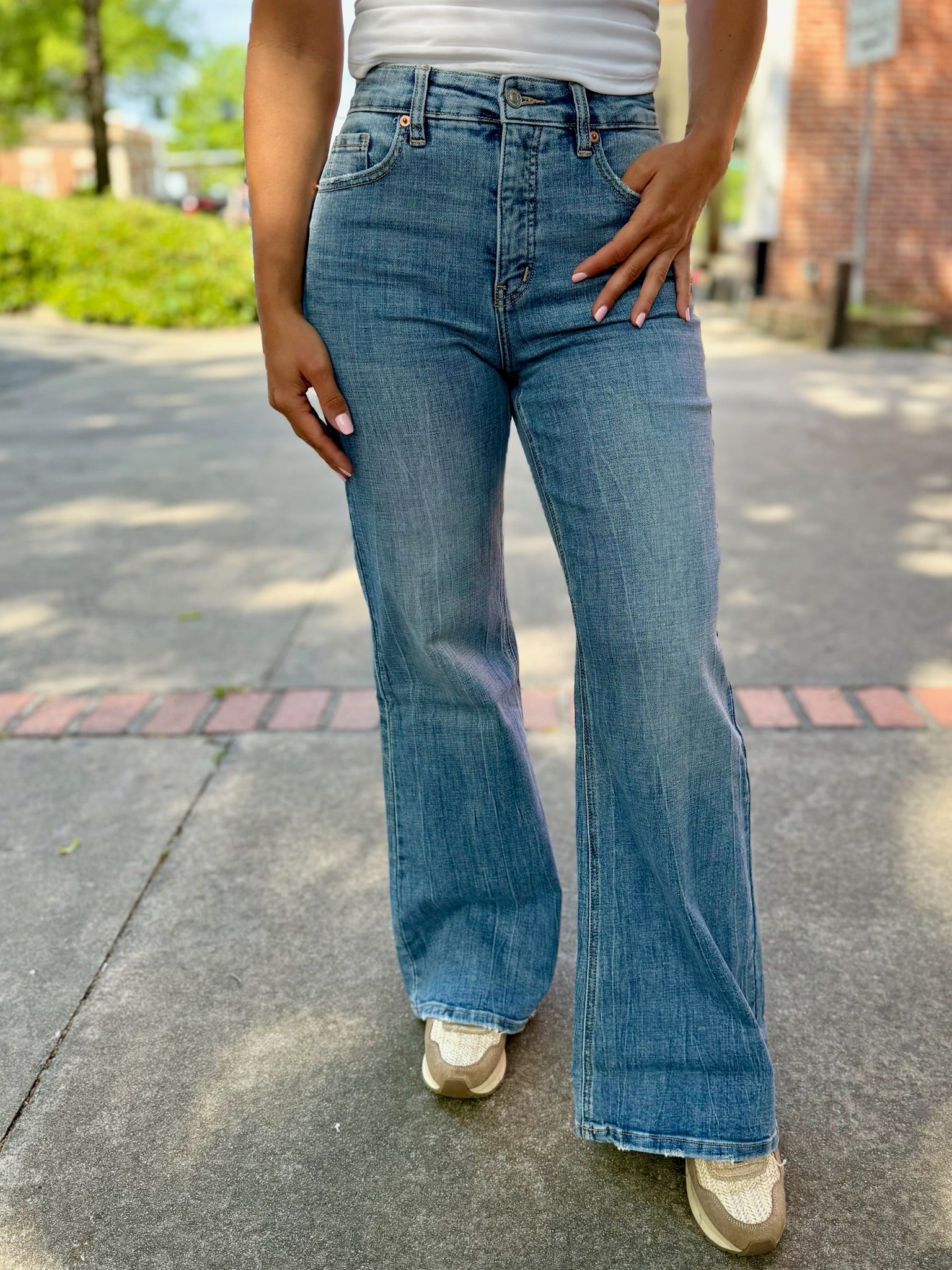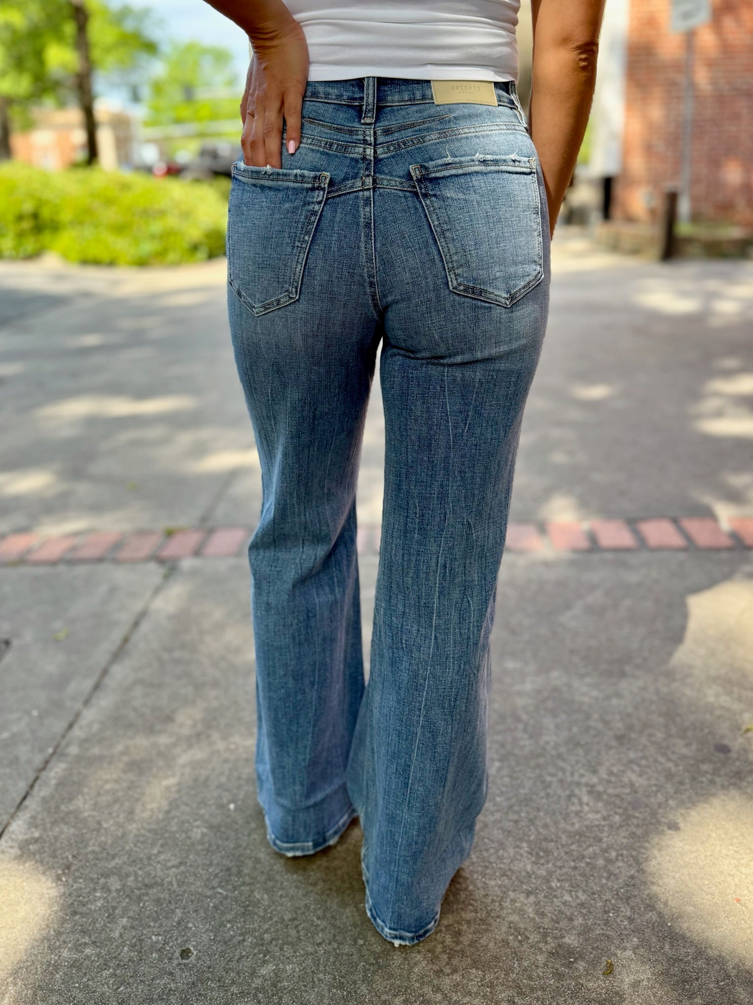 This high-rise jean features classic 5-pocket styling with a long wide-leg silhouette. Crafted from premium denim with comfortable stretch so you can easily wear it every day, dressed up or dressed down.