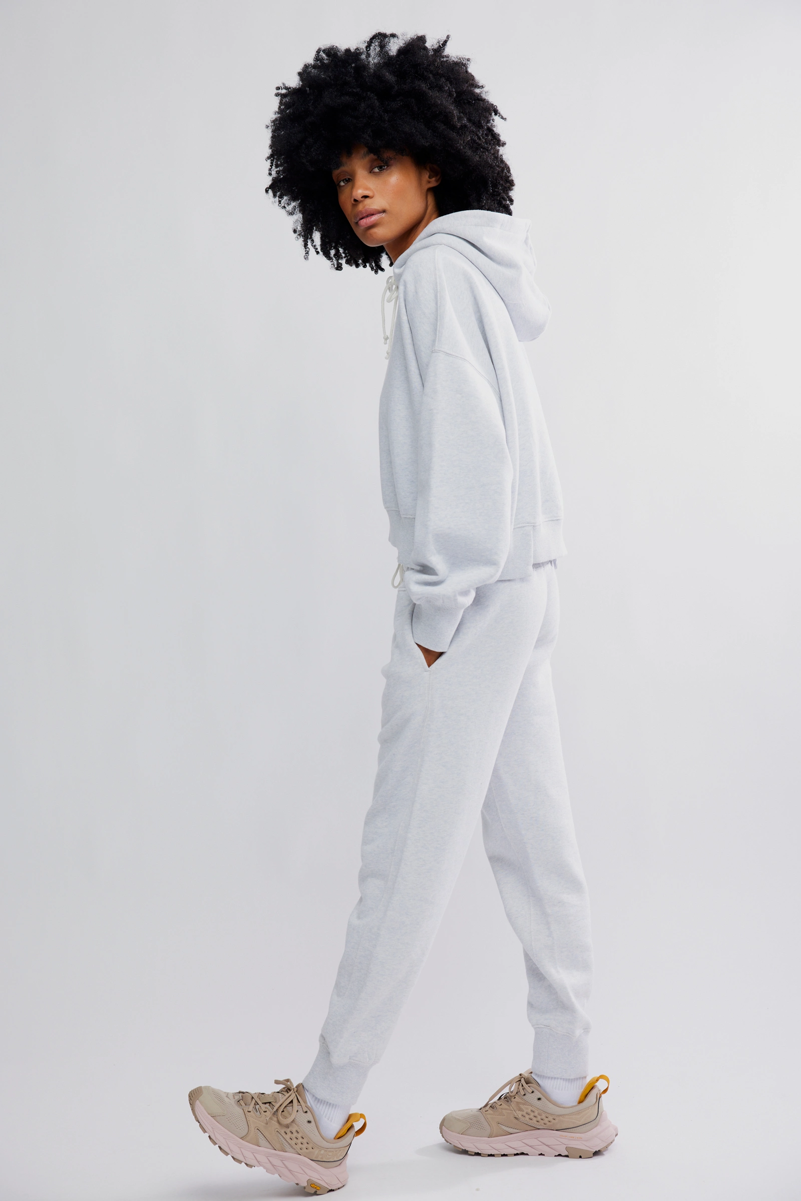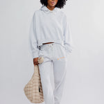 Level up your cool and casual wardrobe rotation with this effortlessly essential set featuring a slightly cropped, relaxed-fit hoodie top with coordinating high-rise tapered sweatpants for the perfect done-in-one look no matter the activity.