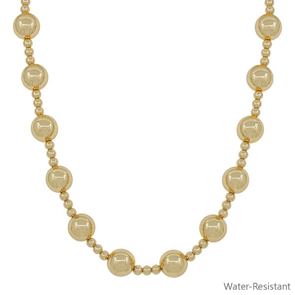 Introducing the Bold Glow Beaded Necklace—a standout piece that makes everyday shine a little brighter. With alternating 14MM statement beads and dainty 5MM accents, this 16"-18" chain delivers the perfect mix of drama and elegance. Its water-resistant finish means it’s built to dazzle through every moment, rain or shine. Wear it solo or layer it up—either way, you’ll steal the spotlight.